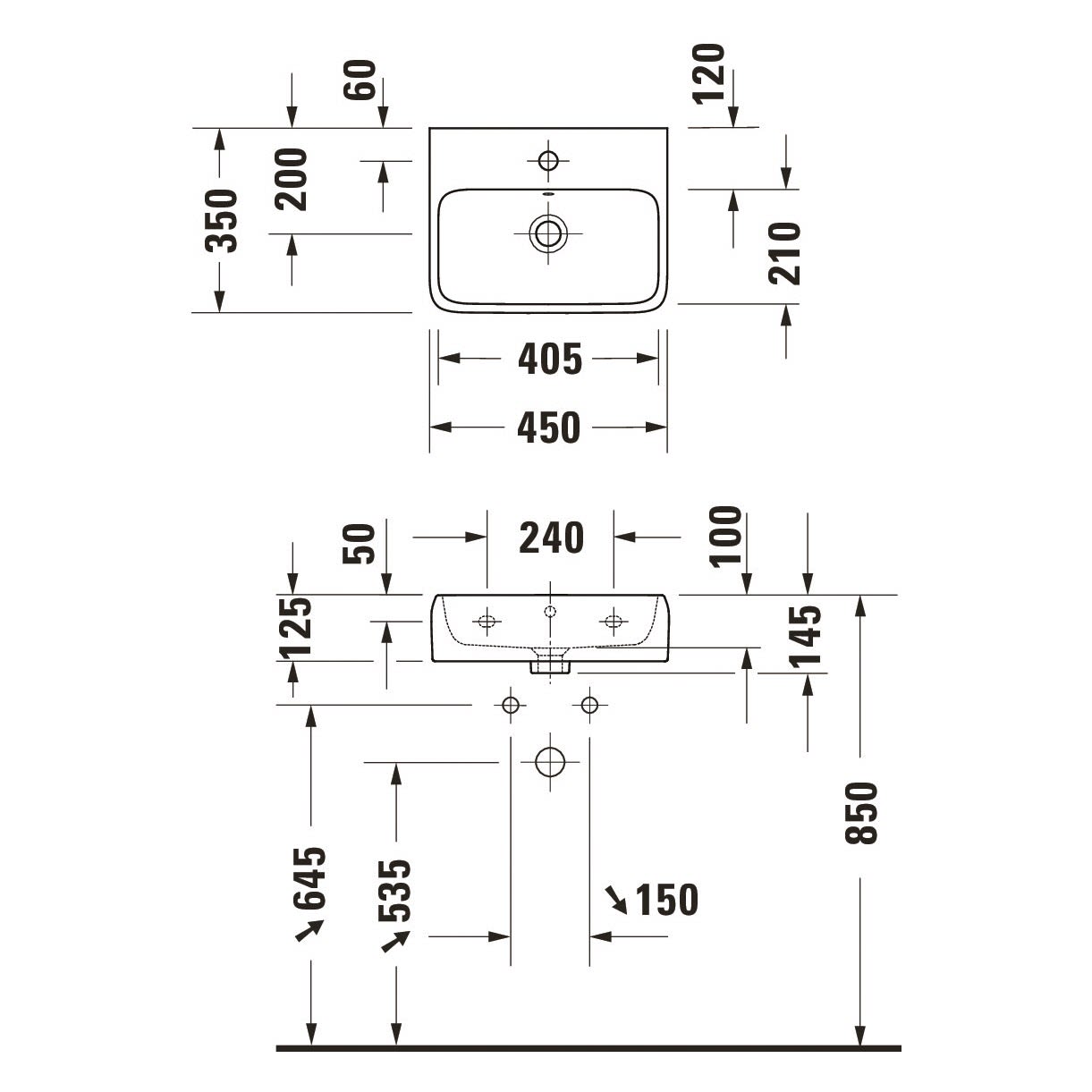 Duravit Qatego Handwaschbecken 45 x 35 cm, 1 Hahnloch