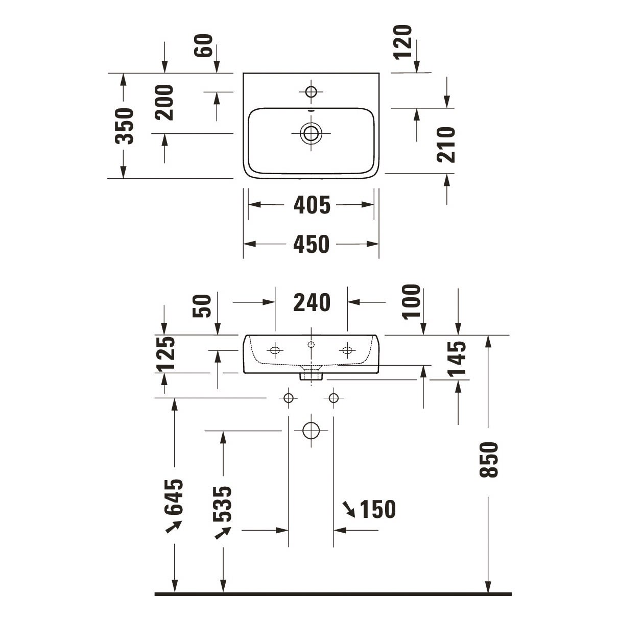 Duravit Qatego Handwaschbecken 45 x 35 cm, 1 Hahnloch, mit HygieneGlace
