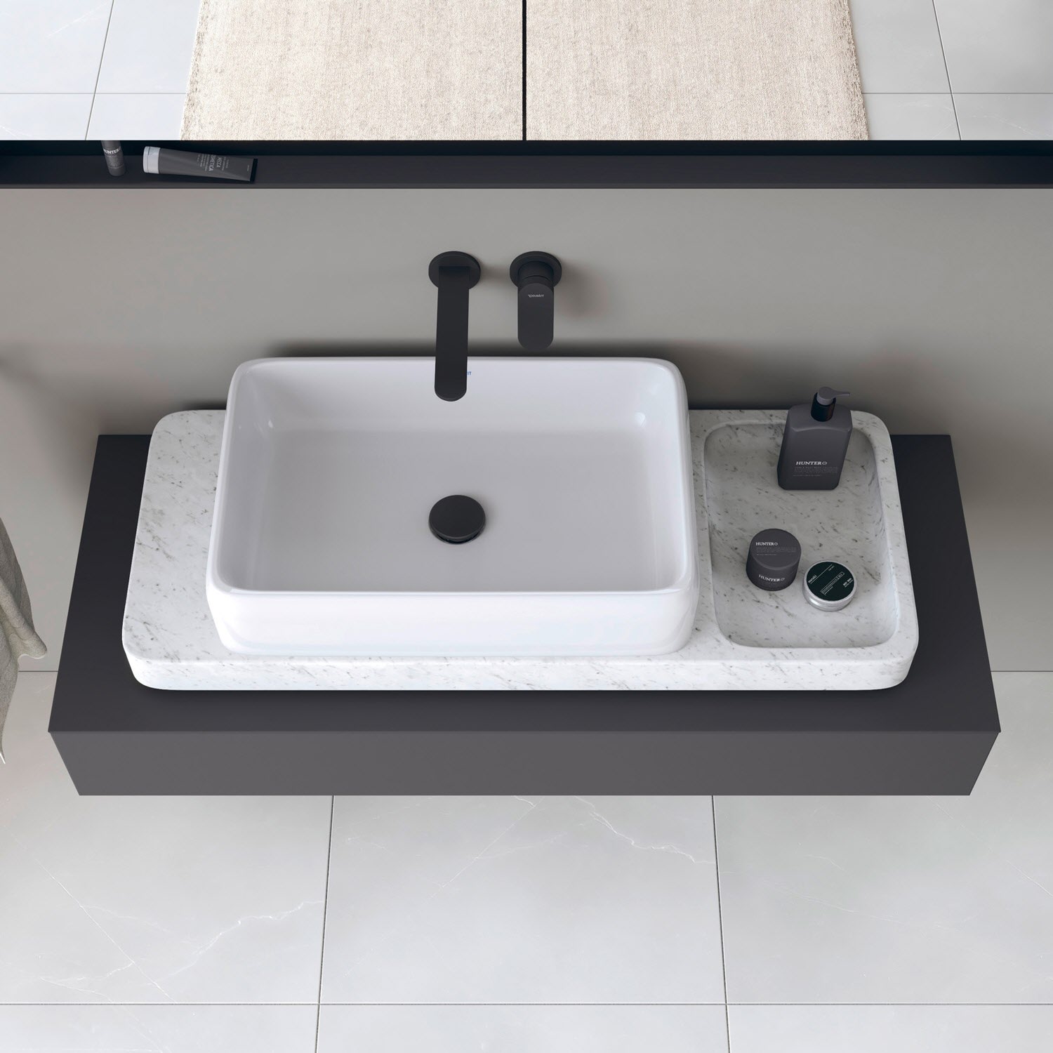 - Unterseite geschliffen, daher für die Montage auf Konsolen oder Waschtischunterschränken mit Konsole geeignet