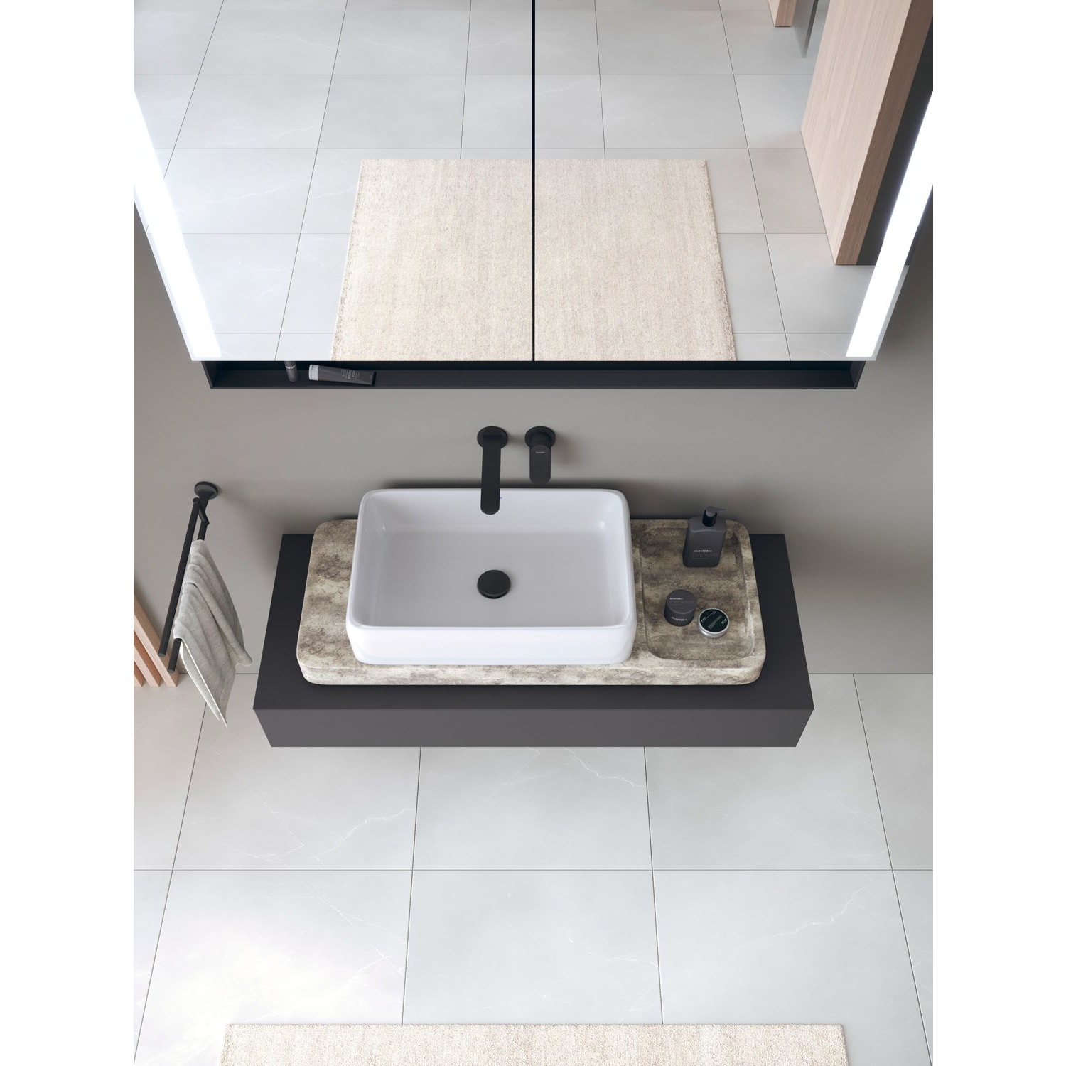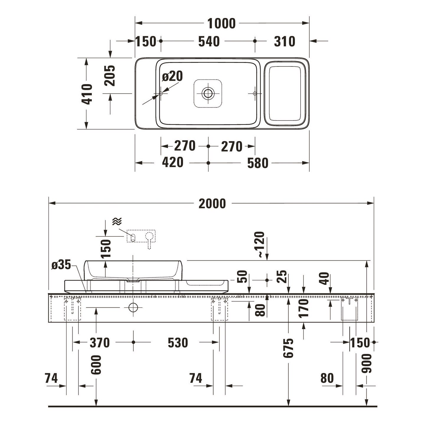 - Unterseite geschliffen, daher für die Montage auf Konsolen oder Waschtischunterschränken mit Konsole geeignet