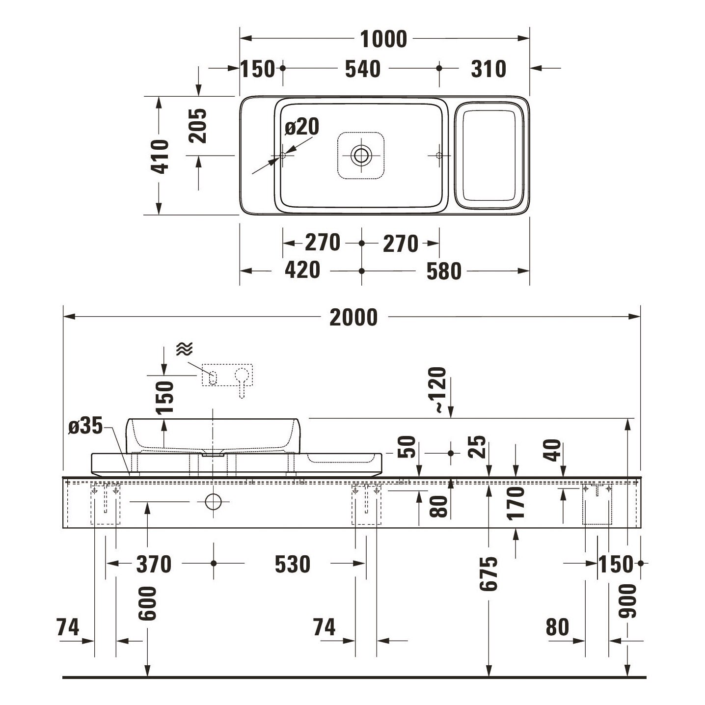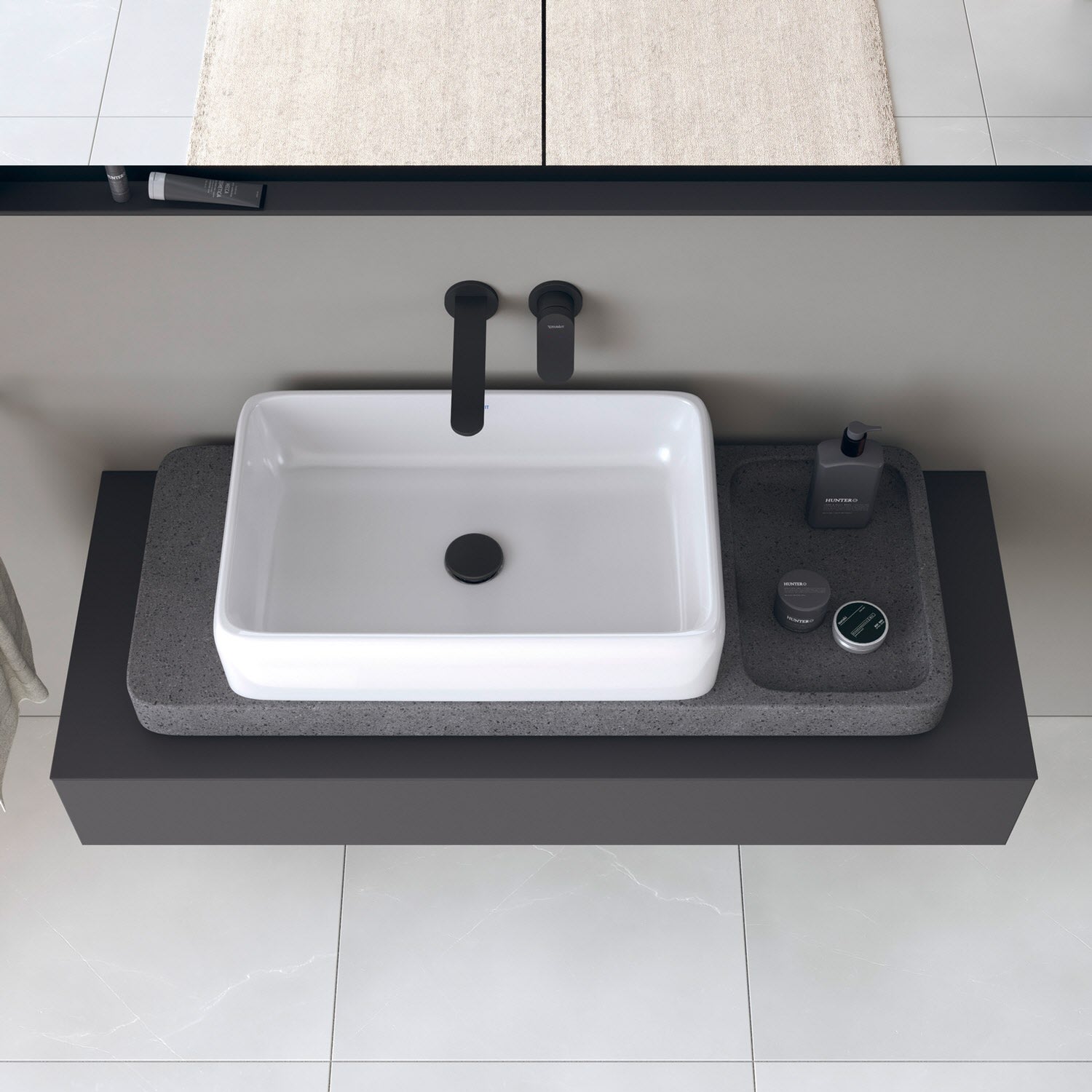 - Unterseite geschliffen, daher für die Montage auf Konsolen oder Waschtischunterschränken mit Konsole geeignet
