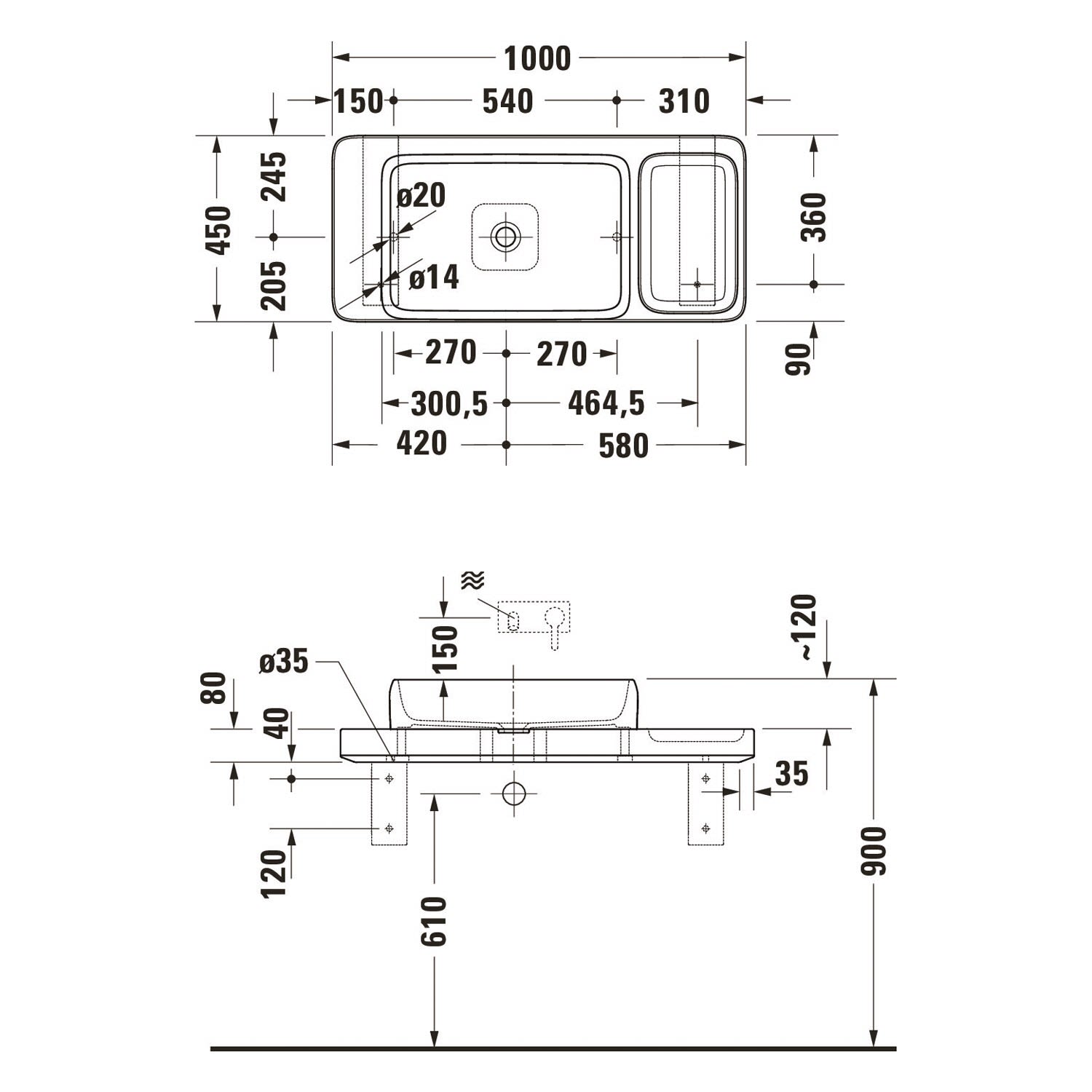 - Unterseite geschliffen, daher für die Montage auf Konsolen oder Waschtischunterschränken mit Konsole geeignet