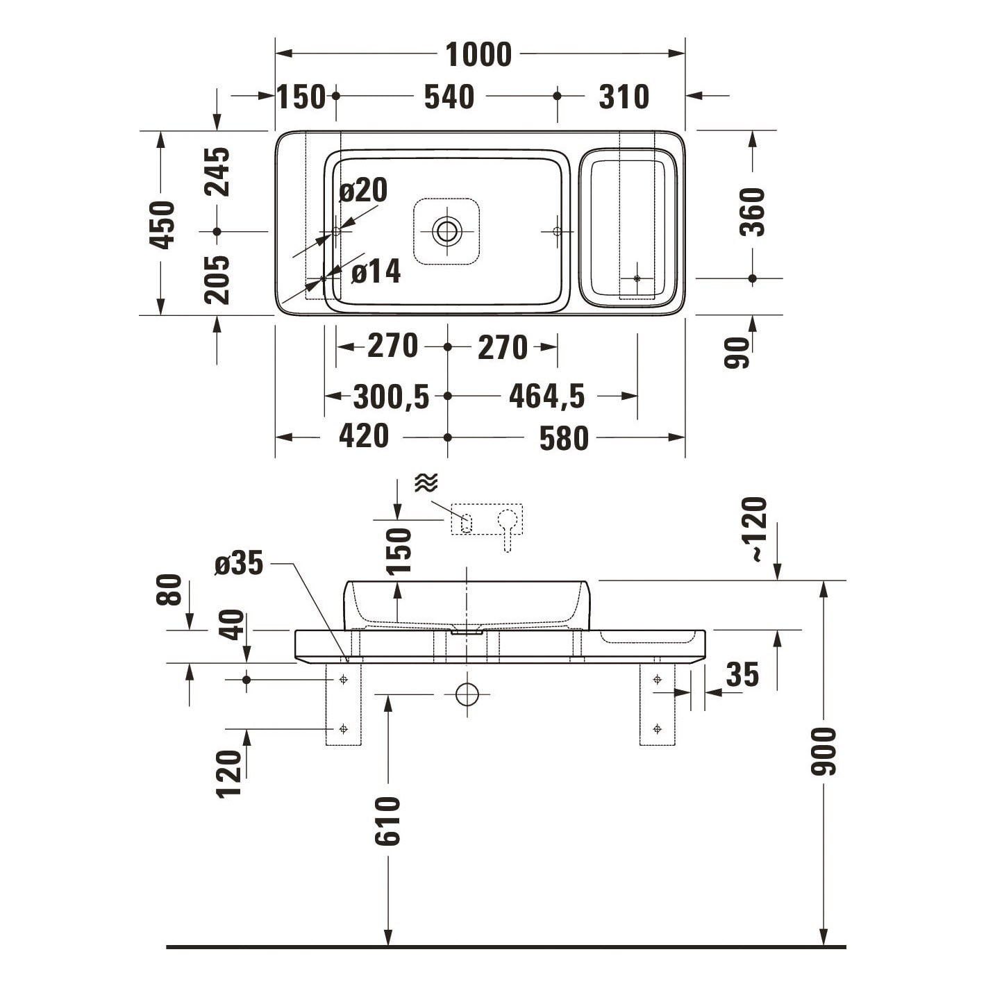 - Unterseite geschliffen, daher für die Montage auf Konsolen oder Waschtischunterschränken mit Konsole geeignet