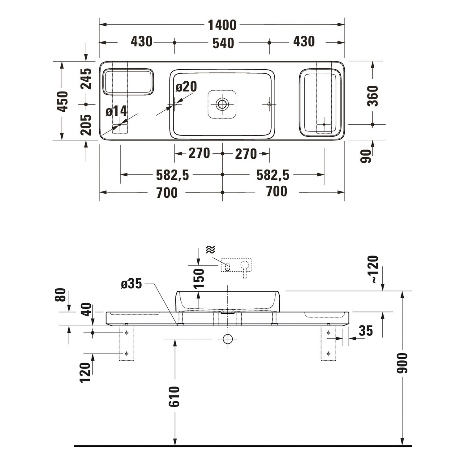 Duravit Qatego Steinkonsolen-Set mit Waschtisch, Konsole und Konsolenträger 140 x 45 cm