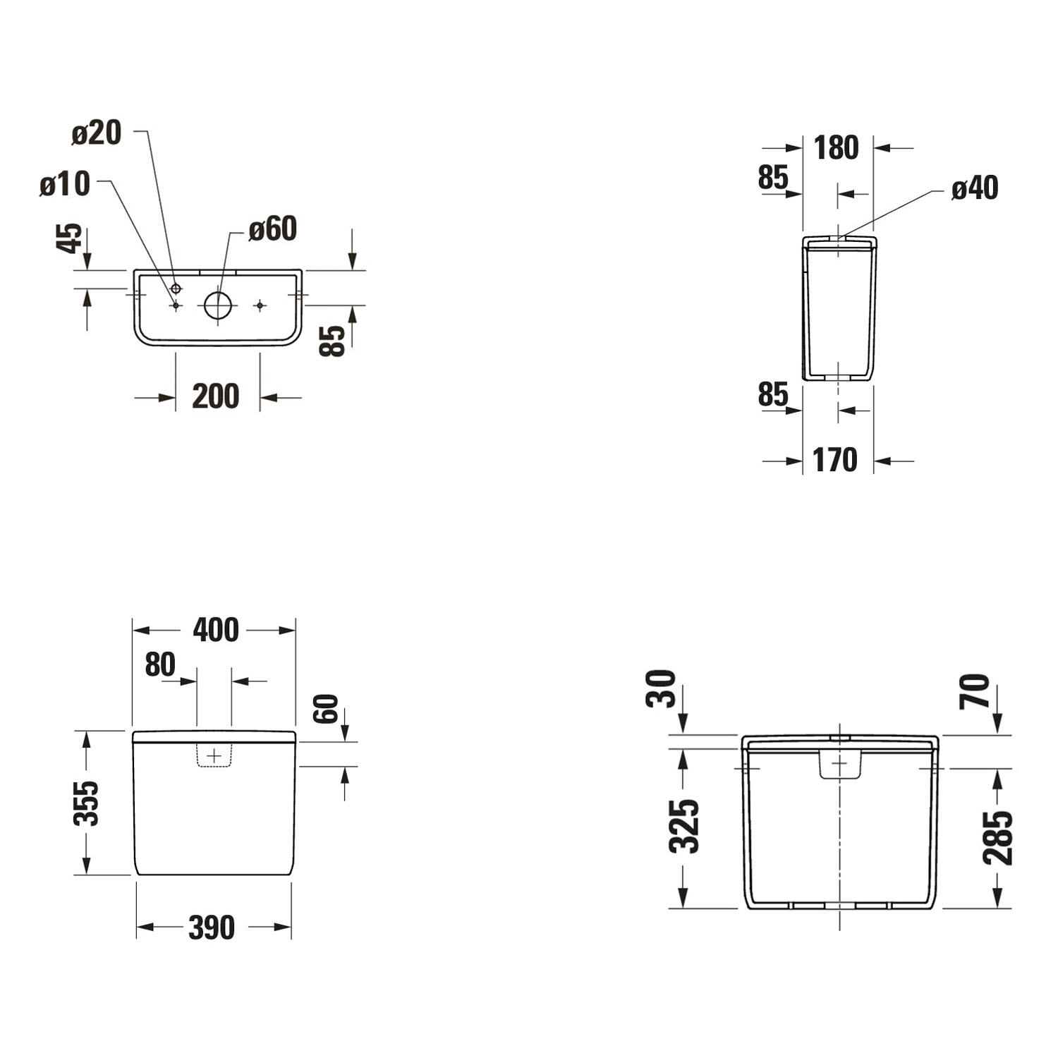 Duravit Qatego Spülkasten für Anschluß unten links, für 4,5/3 l Spülung