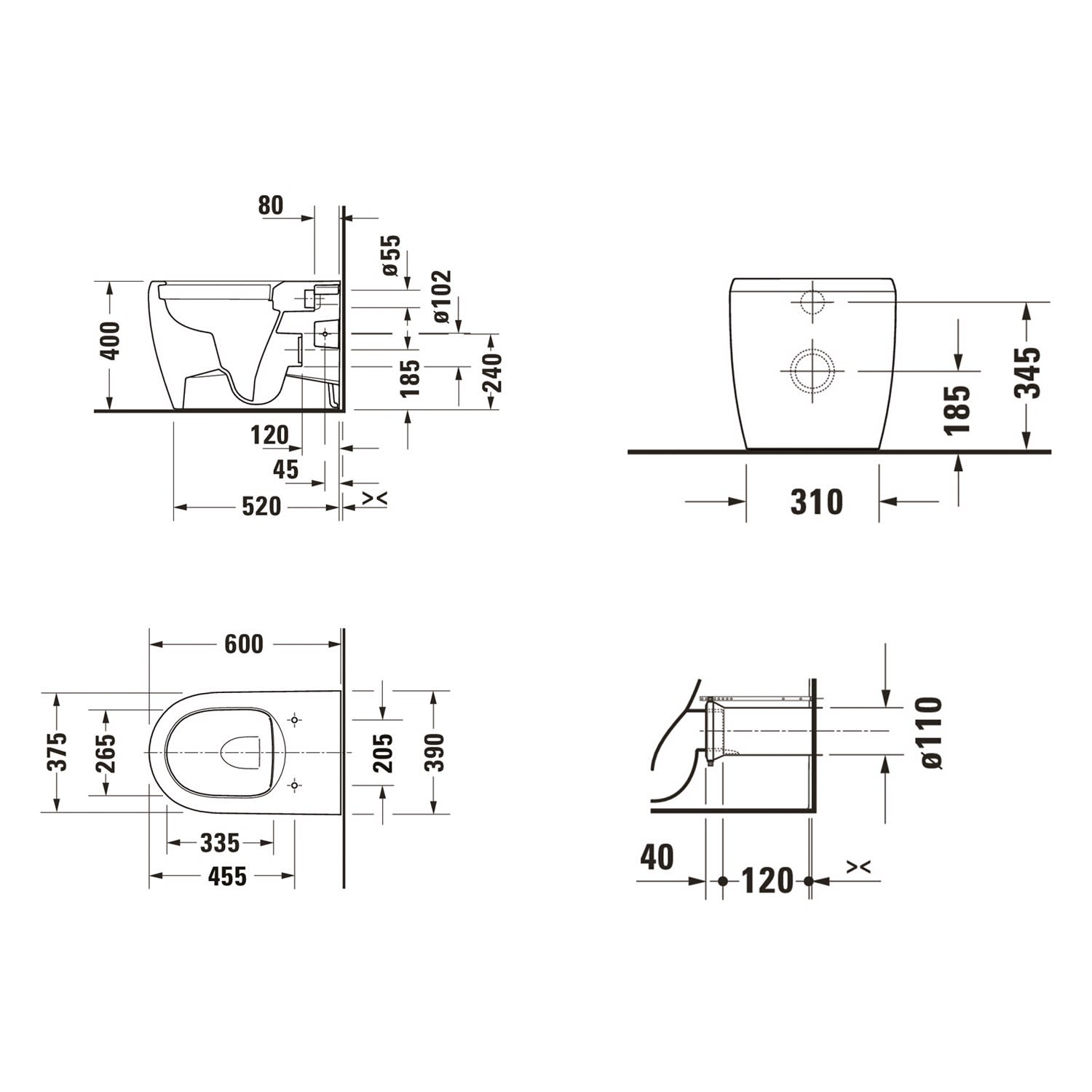- offener Spülrand Duravit Rimless® mit dynamischer Wasserführung: hygienisch einwandfreie Spülergebnisse auch bei kleinen Wassermengen