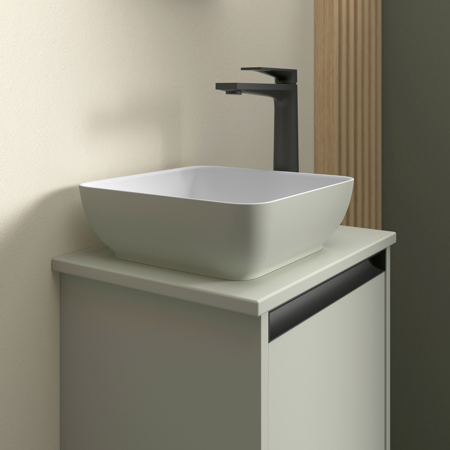 - aus DuroCast Plus: durchgefärbter, langlebiger Mineralguss mit samtig matter Oberfläche für eine warme, angenehme Haptik