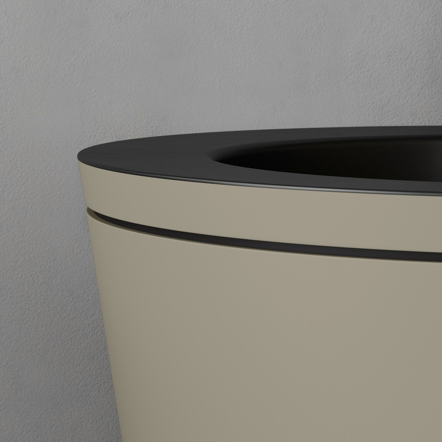 - mit keramischer Ventilabdeckhaube in Beckenfarbe: Becken und Ventil verschmilzen optisch zu einer perfekten Einheit