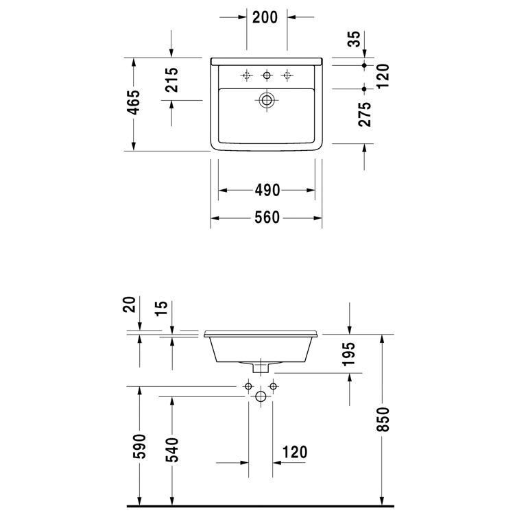 Duravit Starck 3 Einbauwaschtisch 56 cm mit 1 Hahnloch