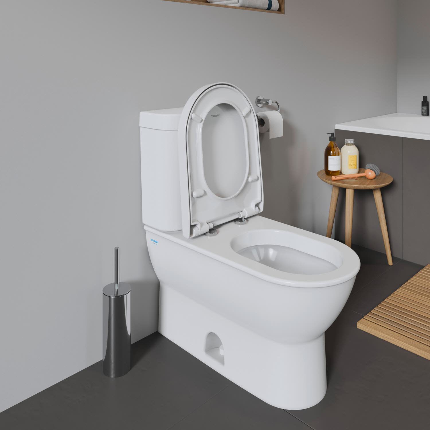 Klassische Formgebung und bewährte Qualität zeichnen den Duravit Universal WC-Sitz ohne Absenkautomatik aus. Seine unaufdringliche Gestaltung und dezente Optik harmoniert mit unterschiedlichen Baddesigns, während seine verlängerte Ausführung mit ergonomisch gestaltetem Sitz und übergreifendem Deckel perfekt zu diversen Duravit WCs passt (beispielsweise zu WCs der Serien Darling New, Starck 2 und Starck 3). Rostfreie Edelstahl-Scharniere garantieren eine lange Lebensdauer und erweisen sich auch bei hoher Belastung als robust. Das langlebige Thermoplast-Material ist ein formstabiler, widerstandsfähiger und pflegeleichter Kunststoff in bester Duravit-Qualität. WC-Sitz und Deckel werden von oben eingebaut und sind nur mit Werkzeug abnehmbar.