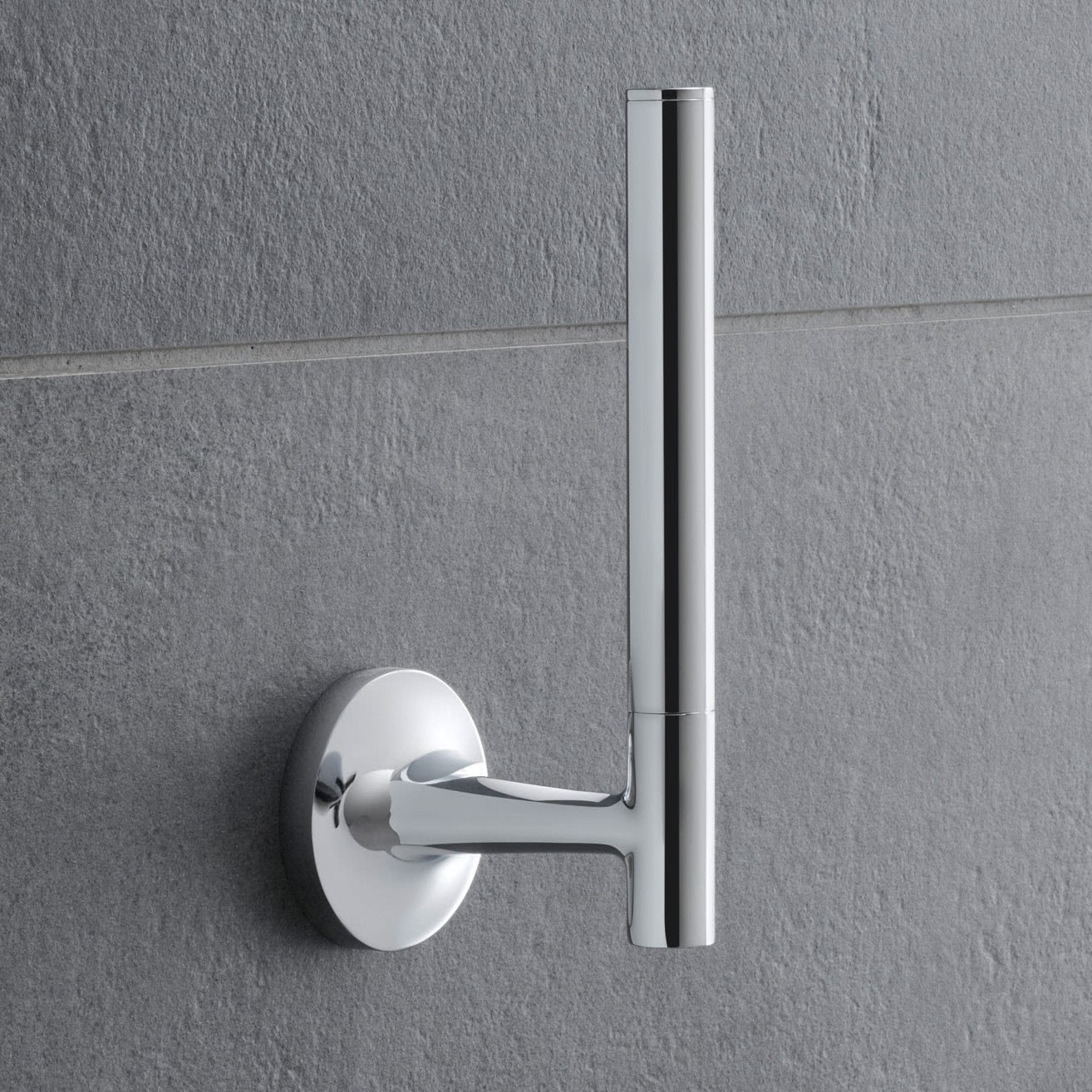 Ikonisches Bad-Design bis ins kleinste Detail: der wandhängende Duravit Starck T Ersatzrollenhalter beweist, dass für Star-Designer Philippe Starck selbst streng funktionale Accessoires mehr als eine bloße Nebensache sind. Form und Funktion fusionieren in diesem nützlichen Badelement zu einem stilvollen Ganzen: aus einer runden, organisch anmutenden Basis entspringt eine vertikale Strebe, die eine Ersatz-Papierrolle auf ästhetische Weise stets griffbereit hält. In der edlen Formgebung wird die serientypische Designidee der stilisierten Verästelung eines Baumes gelungen aufgegriffen. Dank des verdeckten Befestigungssystems wird die elegante Optik gelungen betont. Der hochwertig verarbeitete Papierrollenhalter kann sowohl an die Wand geschraubt als auch geklebt werden und lässt sich ideal mit weiteren Badaccessoires aus der Starck T Designlinie kombinieren.