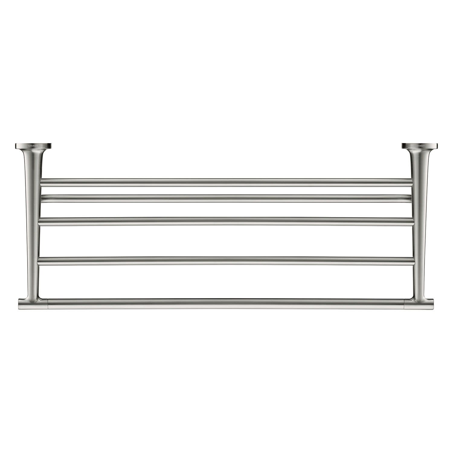 Funktionale Ästhetik gepaart mit wohlproportionierter Formgebung bringt die Duravit Starck T Handtuchablage in Ihr modernes Designbad! Philippe Starcks bildhafte Designidee eines sich verästelnden Baumes findet auch in diesem äußerst nützlichen Badelement seinen Widerklang. Die konische Verjüngung der Hauptstreben folgt dieser ästhetischen Referenz konsequent und unterstreicht den organischen Gestaltungsansatz in Verbindung mit der runden Basis aus jeder Perspektive. Ein stilvolles Bad-Accessoire, das auf seinen vier gerundeten Metallsprossen nicht nur all Ihren Hand- und Gästetüchern bequem Platz bietet, sondern zusätzlich mit einer großzügigen Stange zum Aufhängen Ihres Badetuchs glänzt. Hinter den stilvollen Wandhalterungen verbirgt sich ein verdecktes Befestigungssystem, das die elegante Optik gelungen unterstreicht. Praktisch: Die Handtuchablage kann sowohl an die Wand geschraubt als auch geklebt werden und lässt sich ideal mit weiteren Badaccessoires aus der Starck T Designlinie kombinieren.