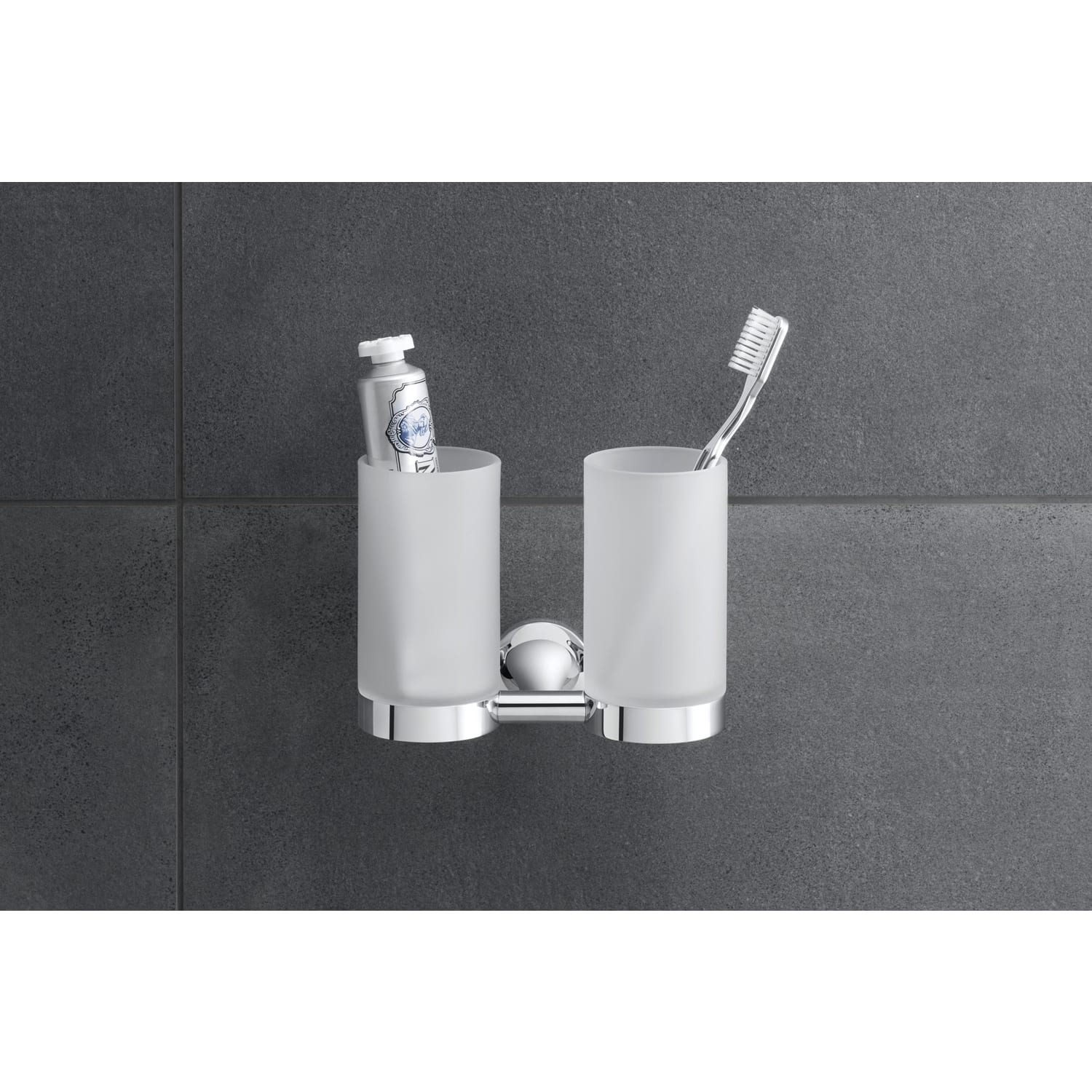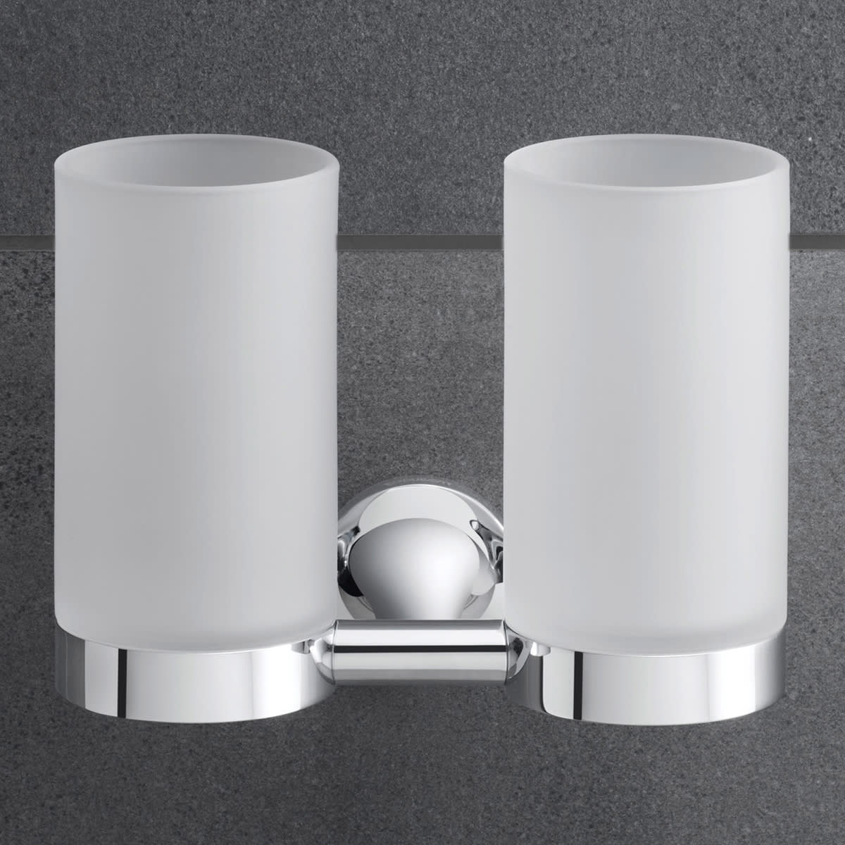 Ikonisches Design und eleganter Materialkontrast: mit dem Duravit Starck T Zahnputzbecher gelingt stilvolle Zahnpflege im Handumdrehen! Philippe Starcks charakteristische Formensprache manifestiert sich auch in diesem funktionalen, wandhängenden Bad-Accessoire in konsequenter Ästhetik. Die weich geformte, runde Wandrosette aus Metall verlängert sich zu einer stilvollen Halterung mit organischer Anmutung und hält zwei edel mattierte, mundgeblasene Glasbecher griffbereit. Der Glashalter dient nicht nur als formschöner Wasserbehälter beim Zähneputzen, sondern präsentiert zudem auf elegante Art Zahnbürste, Rasierer oder andere Pflegeutensilien. Dank des hybriden Befestigungssystems lässt sich der Glashalter sowohl an die Wand schrauben als auch kleben – in beiden Fällen bleibt die Befestigung vollkommen unsichtbar. Das stilisierte „T“ der Serie kommt in allen Farbausführungen gelungen zur Geltung und überzeugt sowohl mit der hochwertigen Verarbeitung wie auch mit dem attraktiven puristischen Design.