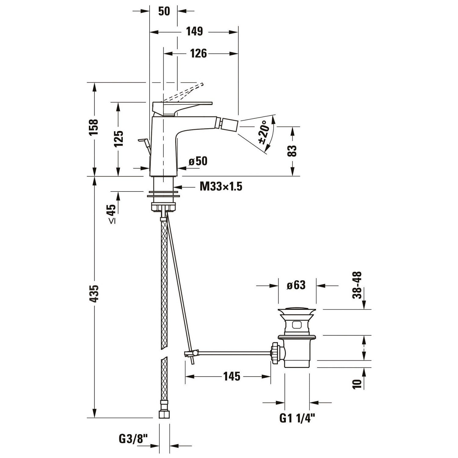 - Maß der Anschlussschläuche: 3/8 Zoll