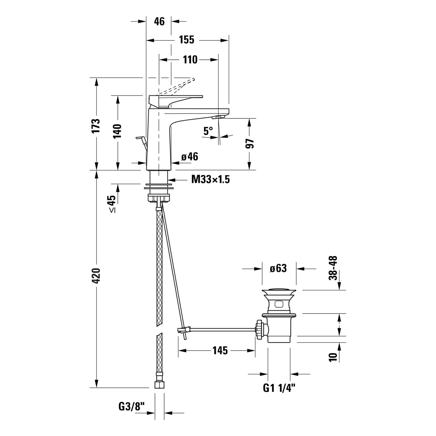 - einfache Installation: Armatur wird über flexible Anschlussschläuche mit den Eckventilen verbunden