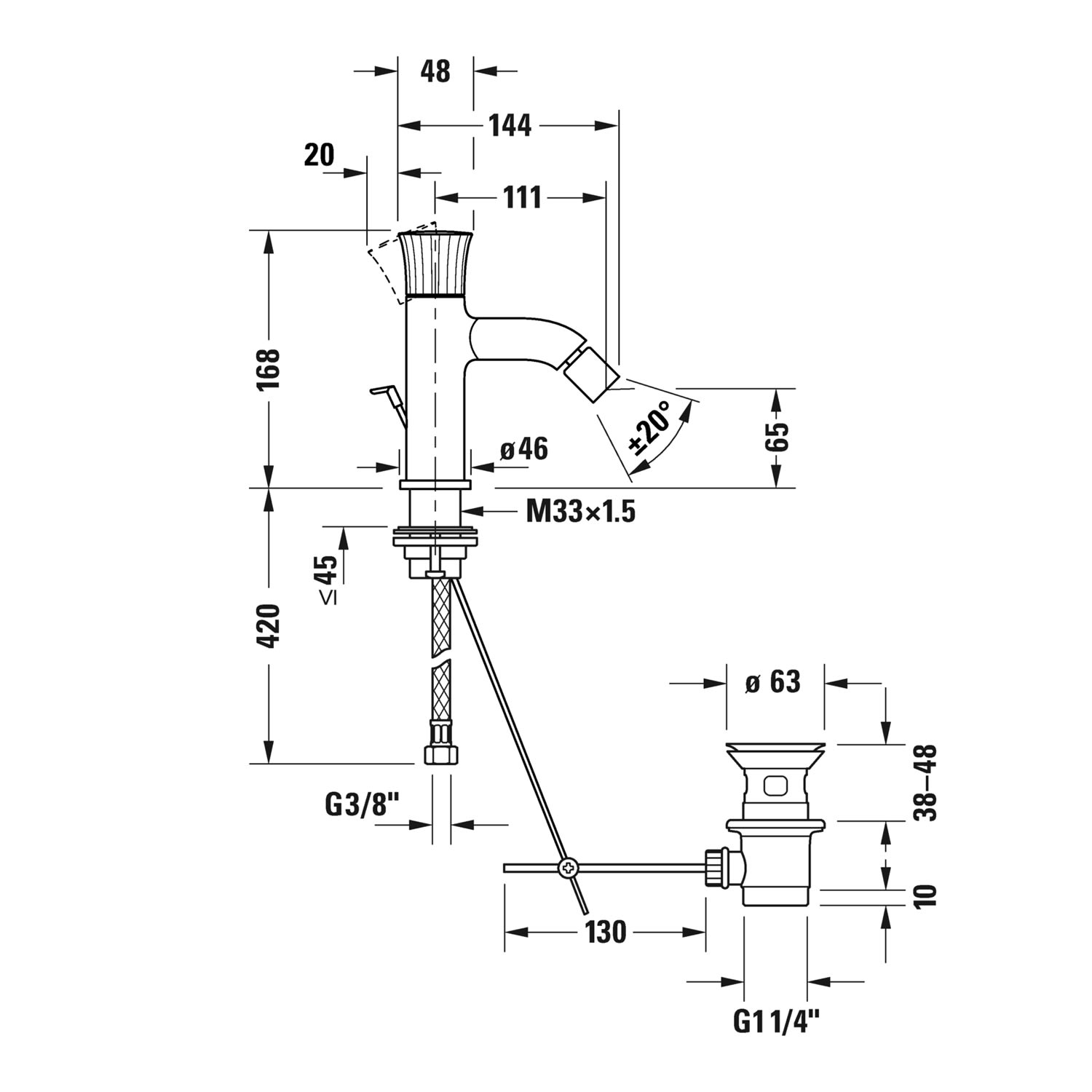 Duravit White Tulip Einhebel-Bidetmischer mit Ablaufgarnitur
