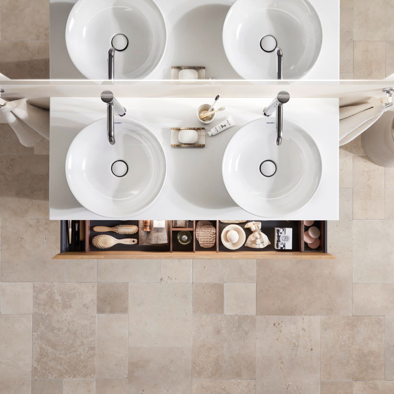 Passende Aufsatzwaschtische finden Sie in der "Passliste" unter "Downloads und Zusatzinformationen". Die Modellnummer der Keramik bitte bei Bestellung mit angeben.