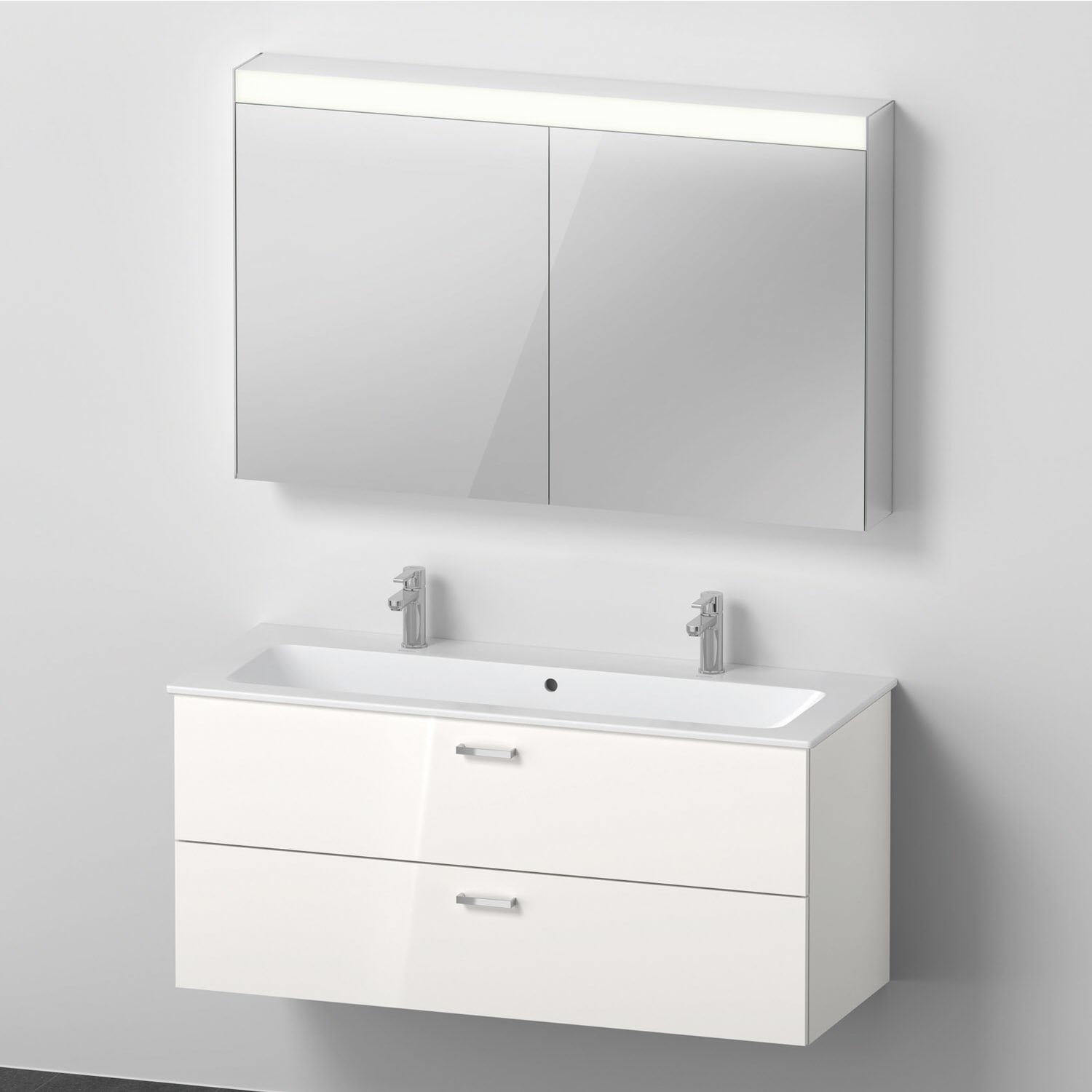 Duravit XBase MöbelSet 123 cm, mit Spiegelschrank, 2 Hahnlöcher, ohne Ablagefläche