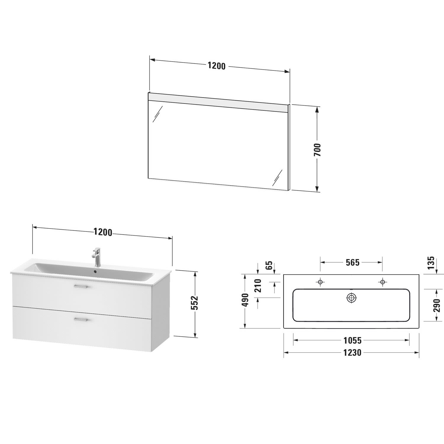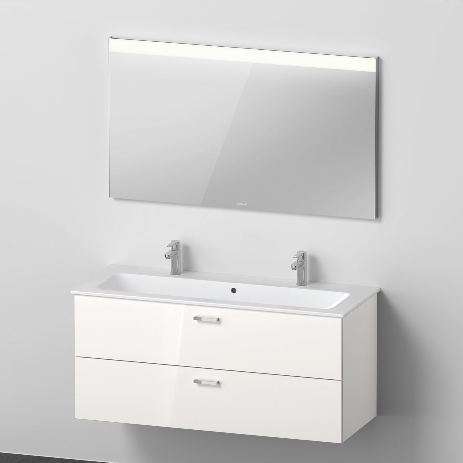 Duravit XBase MöbelSet 123 cm, mit Spiegel, 2 Hahnlöcher, ohne Ablagefläche