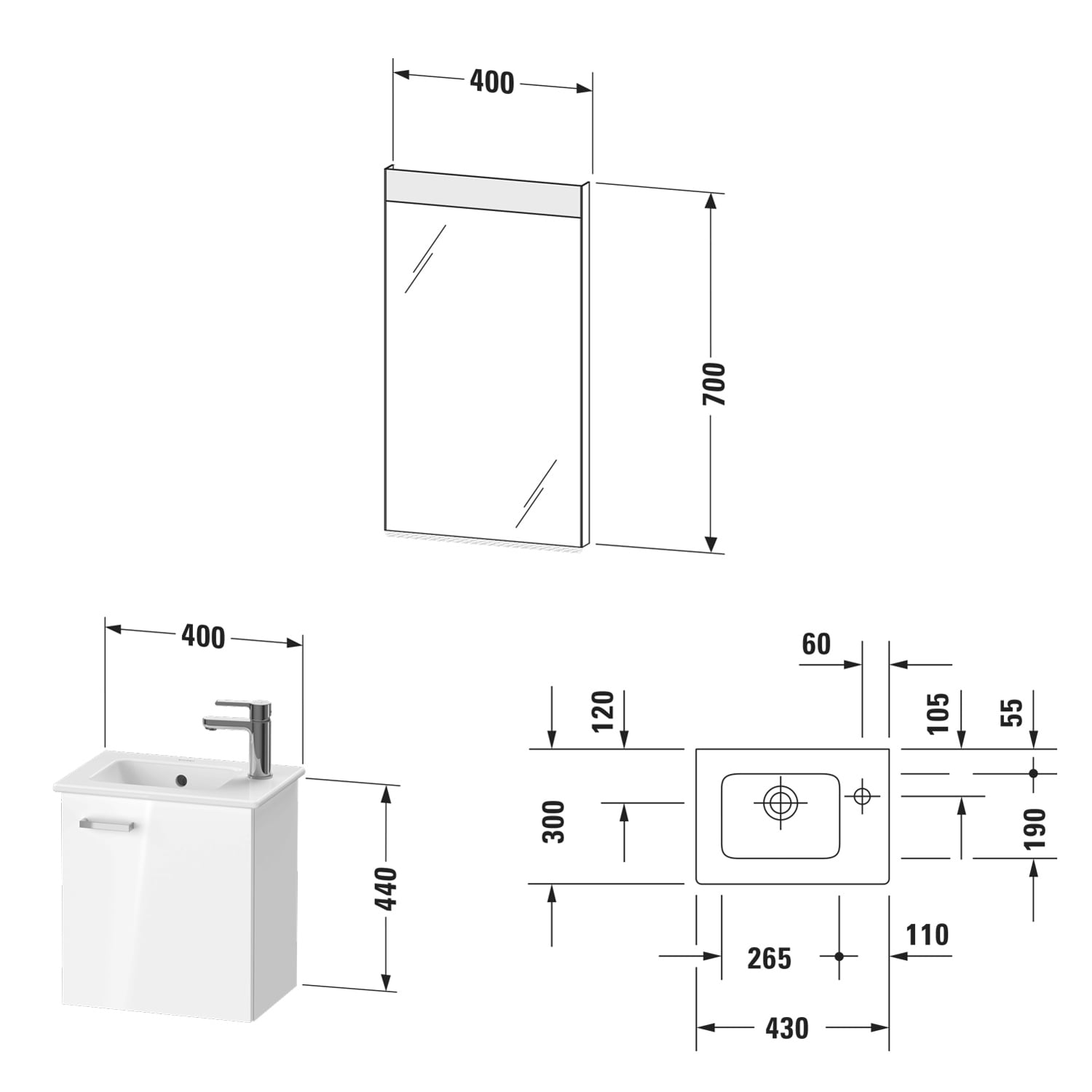 Duravit XBase MöbelSet 40 cm, mit Spiegel, Anschlag rechts