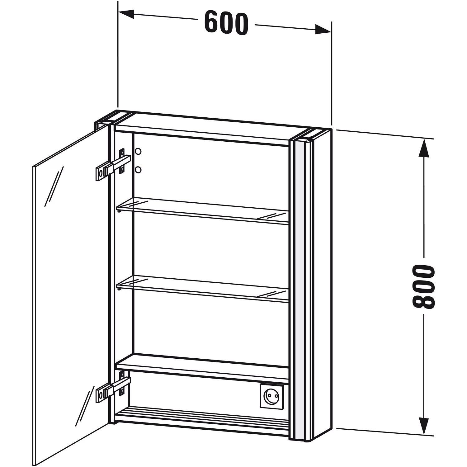 Duravit Xsquare Spiegelschrank 60 x 80 cm, 1 Tür Anschlag links, Steckdose: LKZ 1 (F)