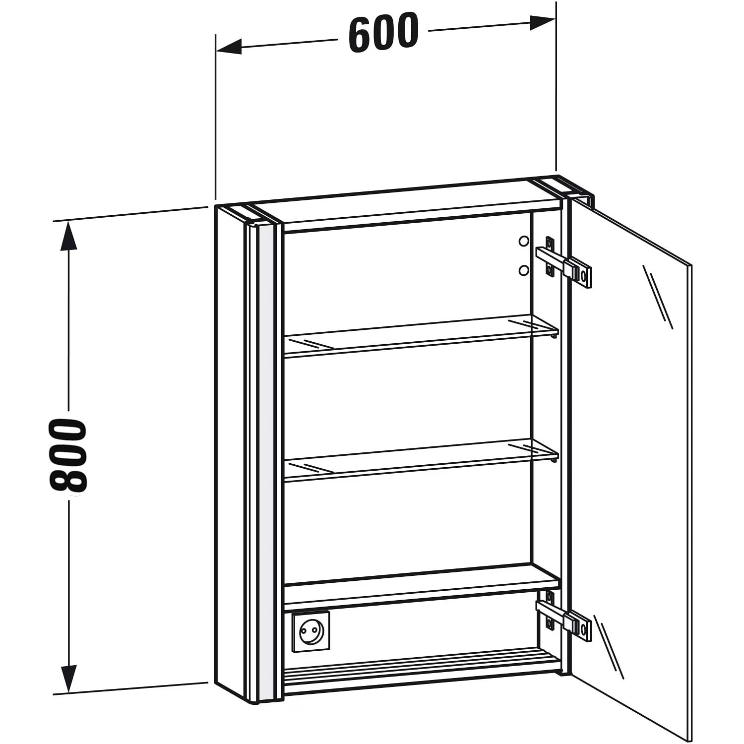 Duravit Xsquare Spiegelschrank 60 x 80 cm, 1 Tür Anschlag rechts, Steckdose: LKZ 1 (F)