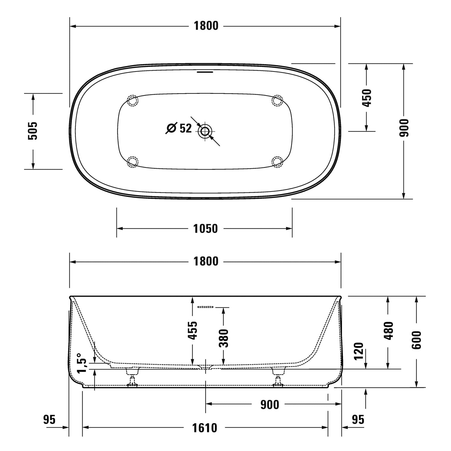 - Montage eines Duravit Wannengriffs für einen sicheren Ein- und Ausstieg möglich (Montage nur ab Werk möglich)