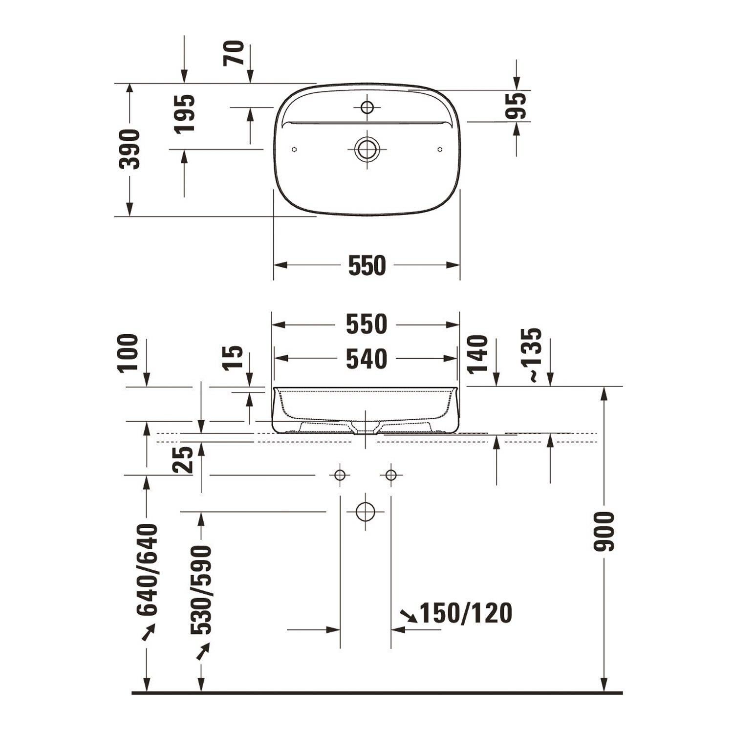 Duravit Zencha Aufsatzbecken 55 x 39 cm, mit Hahnlochbank