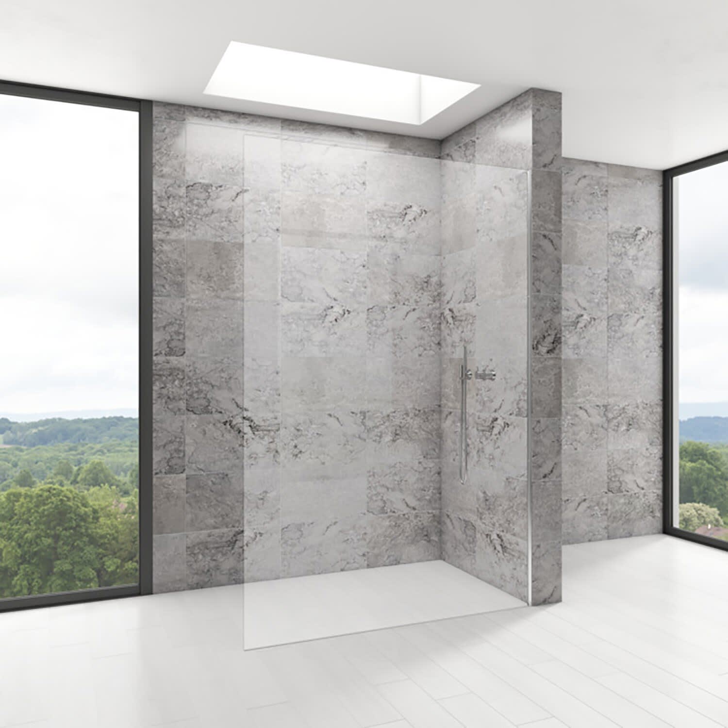 - Freistehende Duschwand ohne zusätzliche Traverse