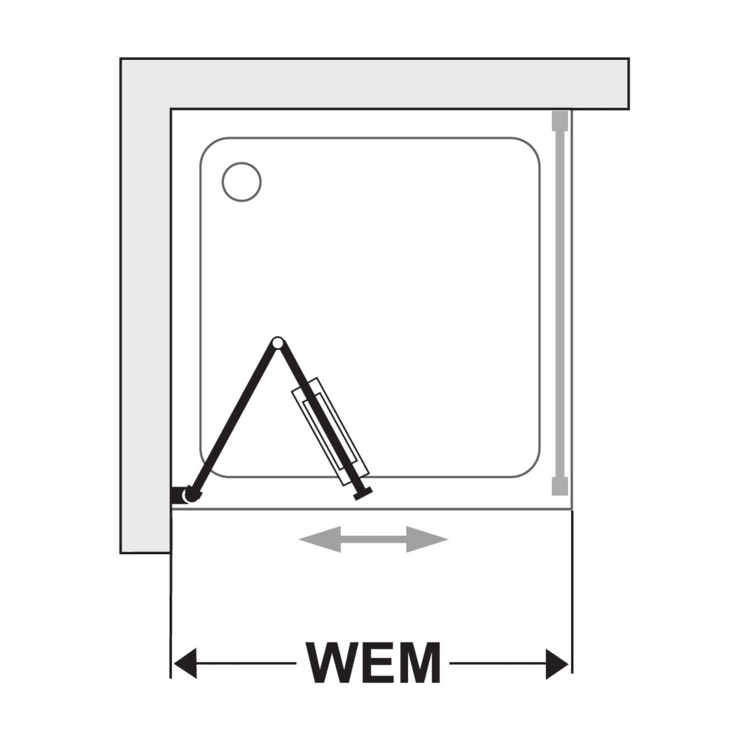 - Einbaubreite Tür für die Montage mit Seitenwand 50 - 91,1 cm