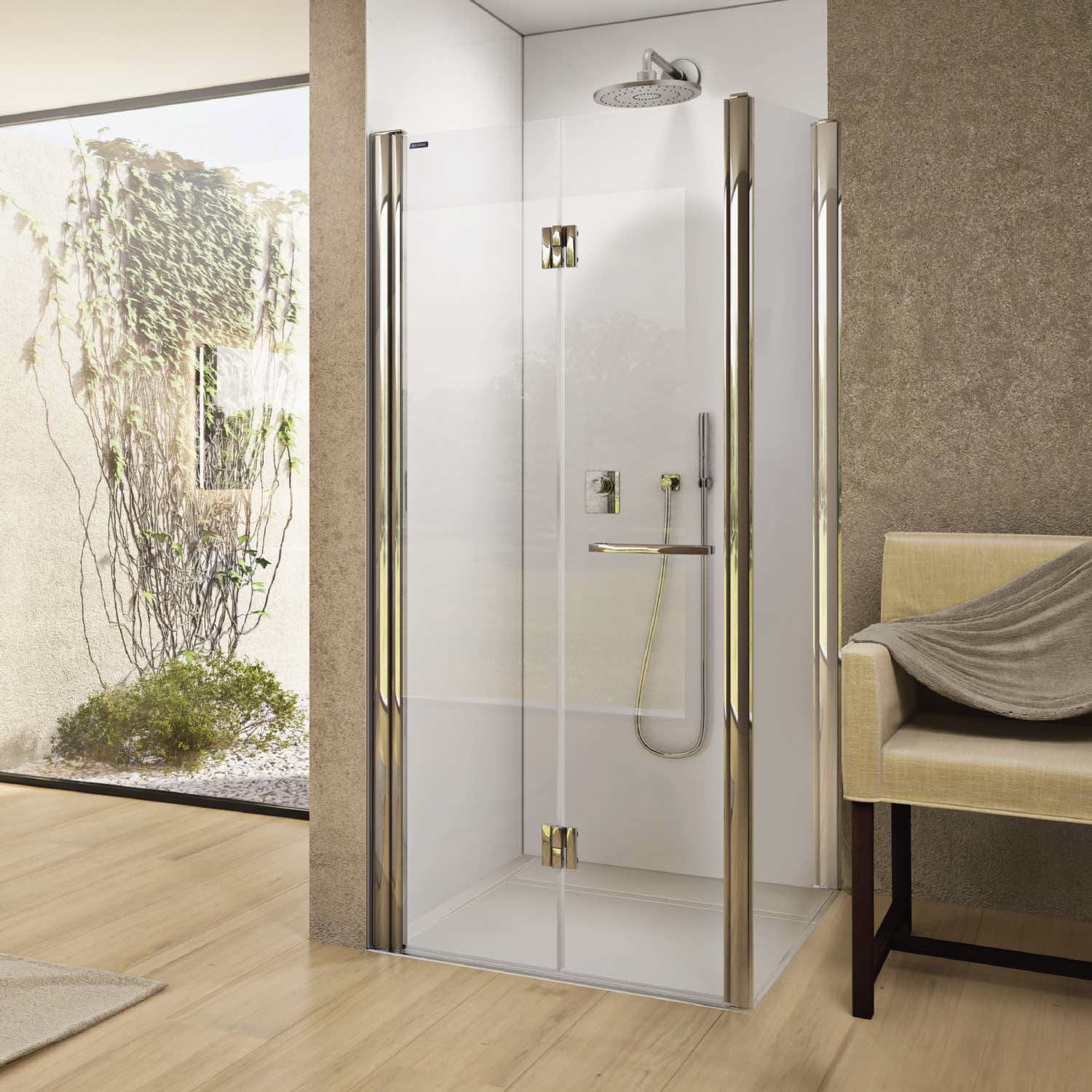 DUSCHOLUX Bella Vita 3 Drehfalttür 90 x 200 cm für Seitenteil, Anschlag links mit CareTec Pro-Beschichtung