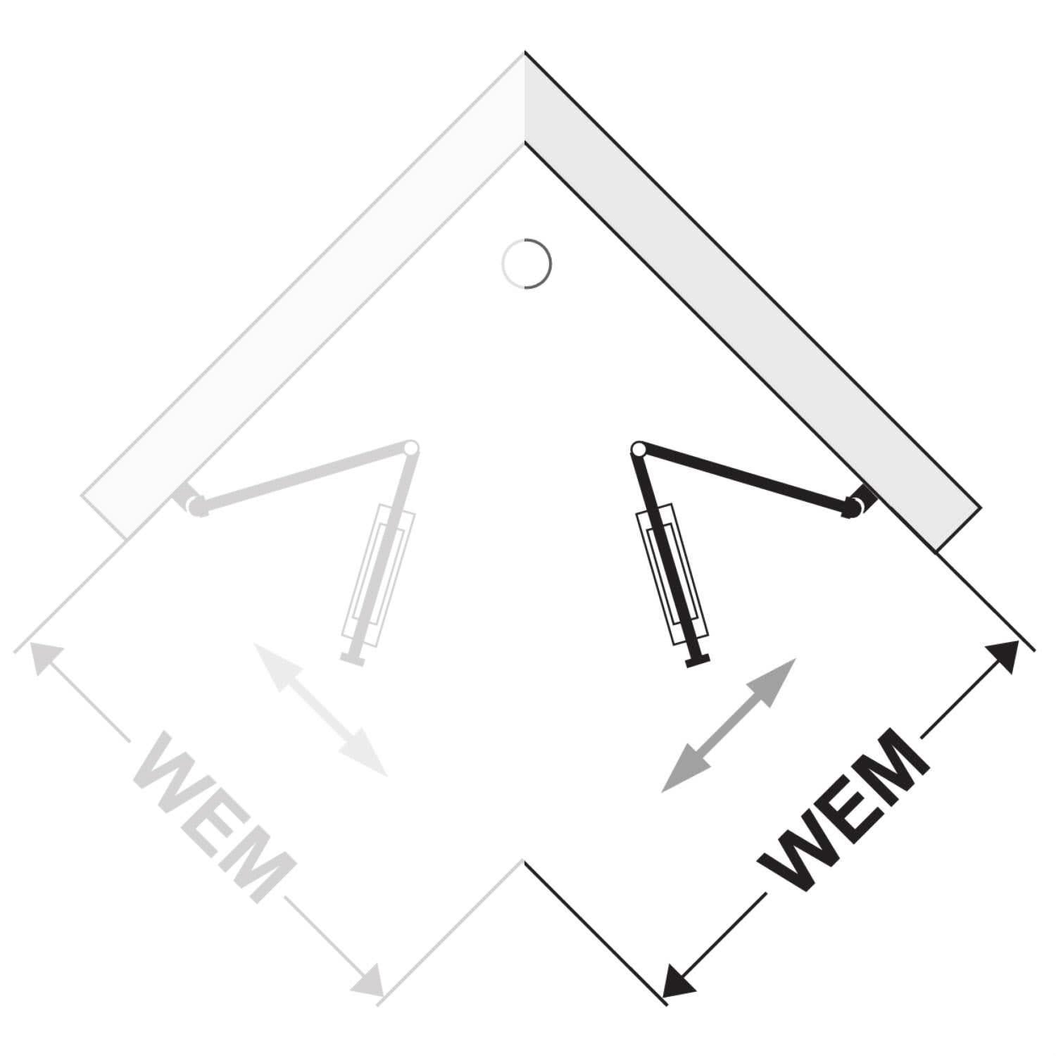 - wandseitiges Türteil nach innen und außen faltbar, zweites Türteil öffnet nach außen