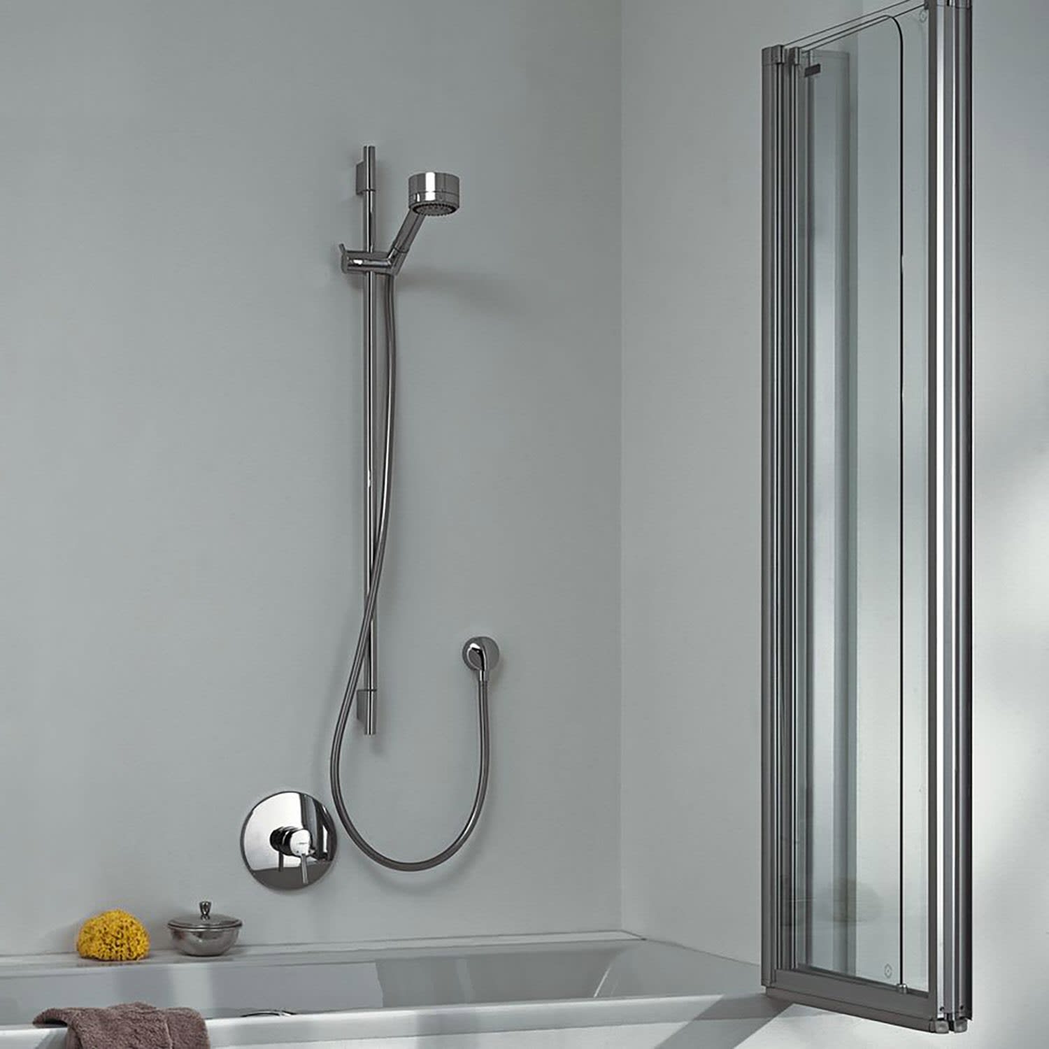 DUSCHOLUX Bella Vita C Faltduschwand 3-teilig 140 x 150 cm für Badewannen, Montage rechts mit CareTec Pro-Beschichtung