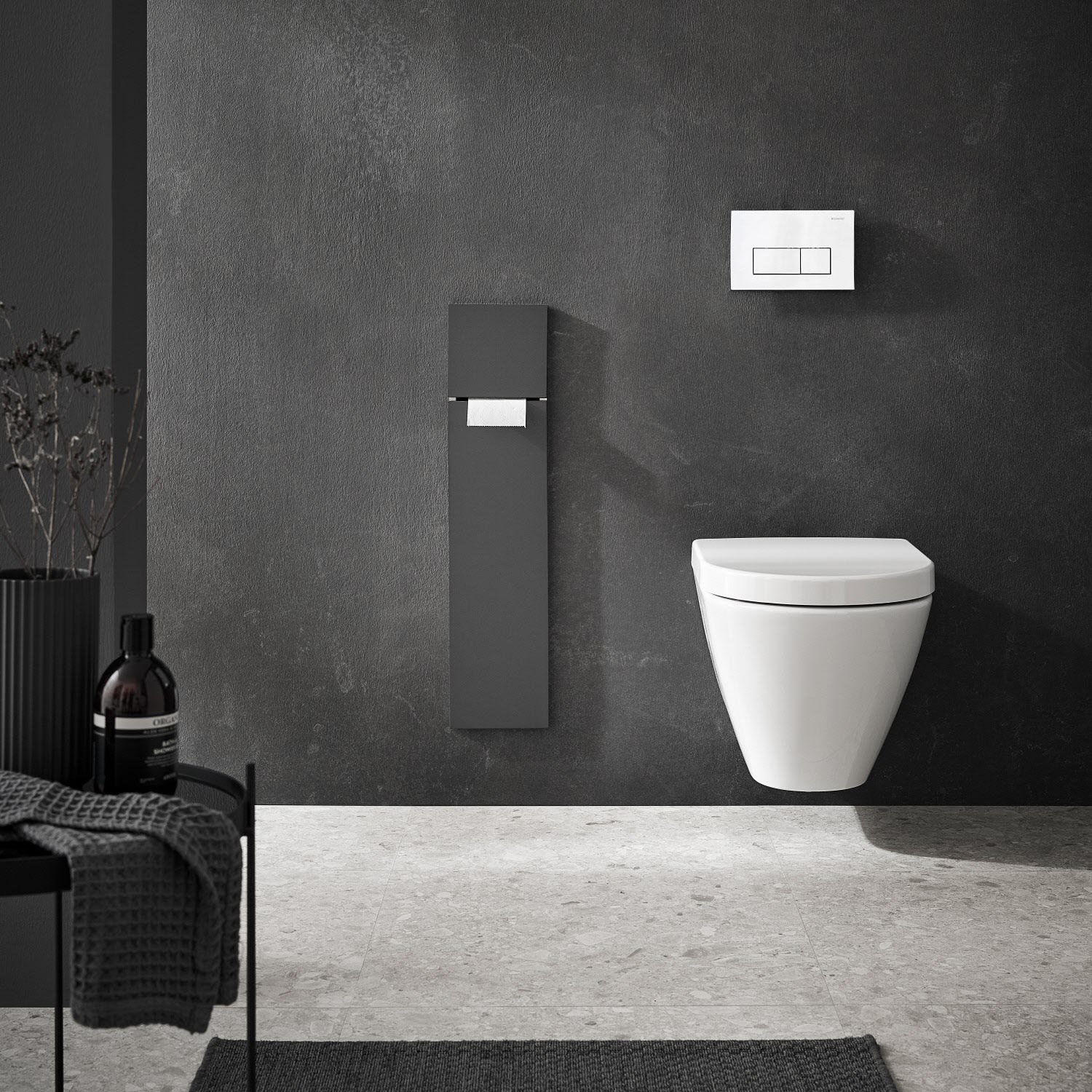 - mit Fächern für Reserverolle oder Feuchtpapierbox, WC-Papier und integrierter Toilettenbürstengarnitur.
