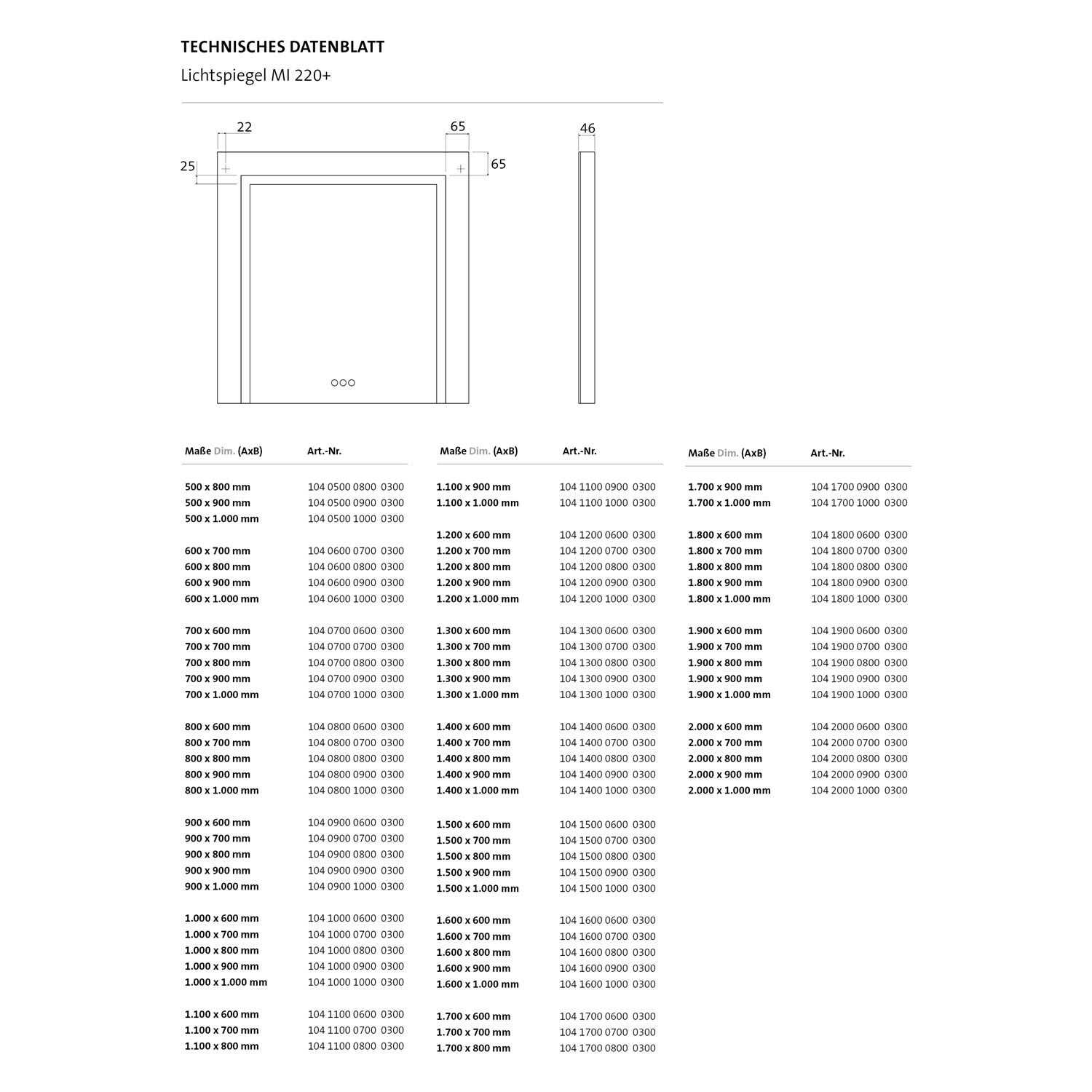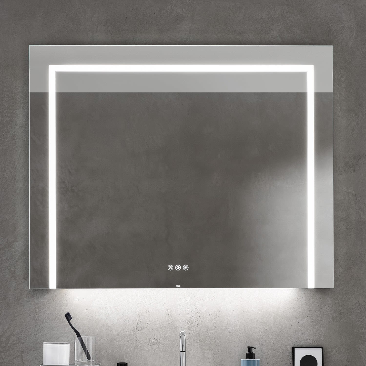 - Lichtsteuerung über drei Touchsensoren in der Spiegelfläche mit den Funktionen: Ein und Ausschalten