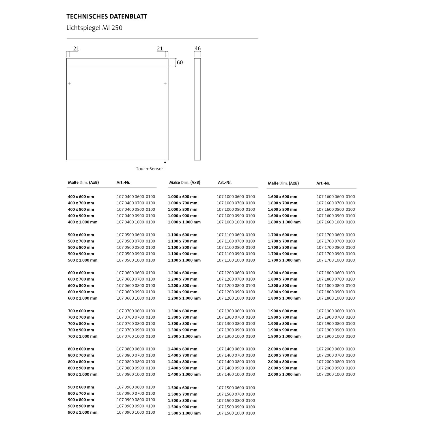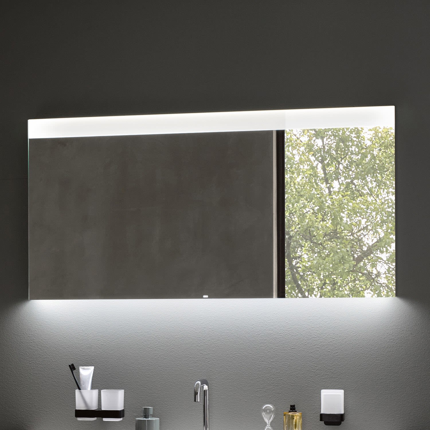 - Lichtsteuerung über einen verdeckten Sensorschalter (unten rechts) mit den Funktionen: Ein- und Ausschalten