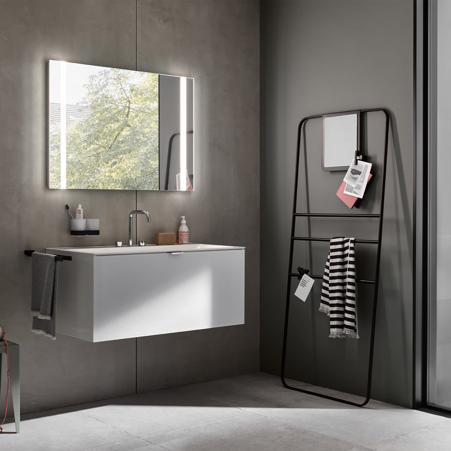 Emco MI 500 LED-Badspiegel 60 cm mit Sensorschalter und zwei durchgehenden Lichtausschnitten in Aluminium