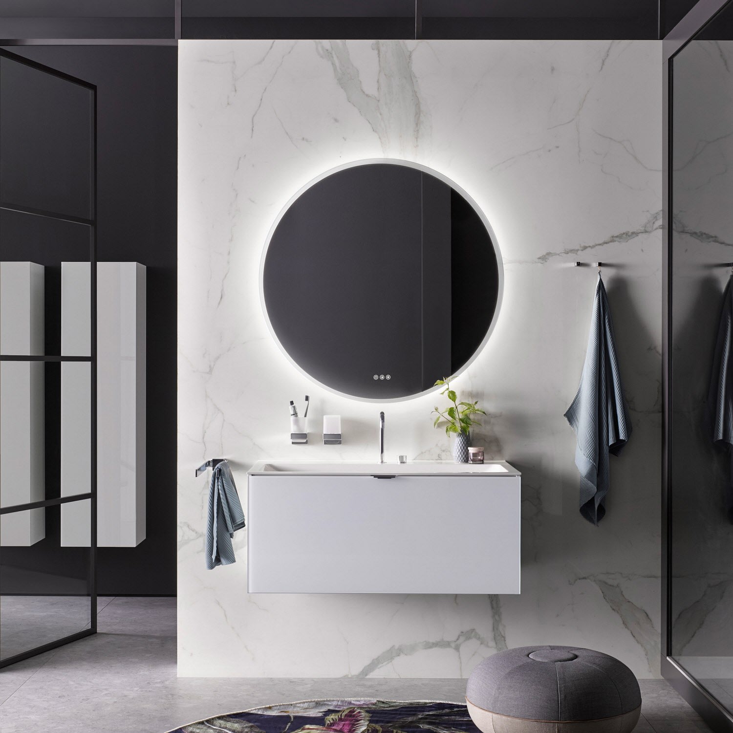 Emco Pure ++ LED-Badspiegel mit umlaufender Mattierung Ø 79 cm