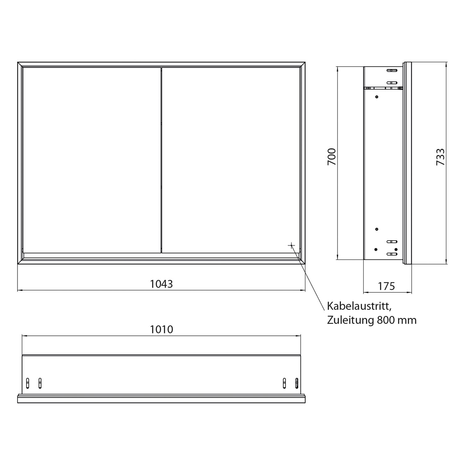 - Kabeldurchlass nach außen bei geschlossenen Spiegeltüren