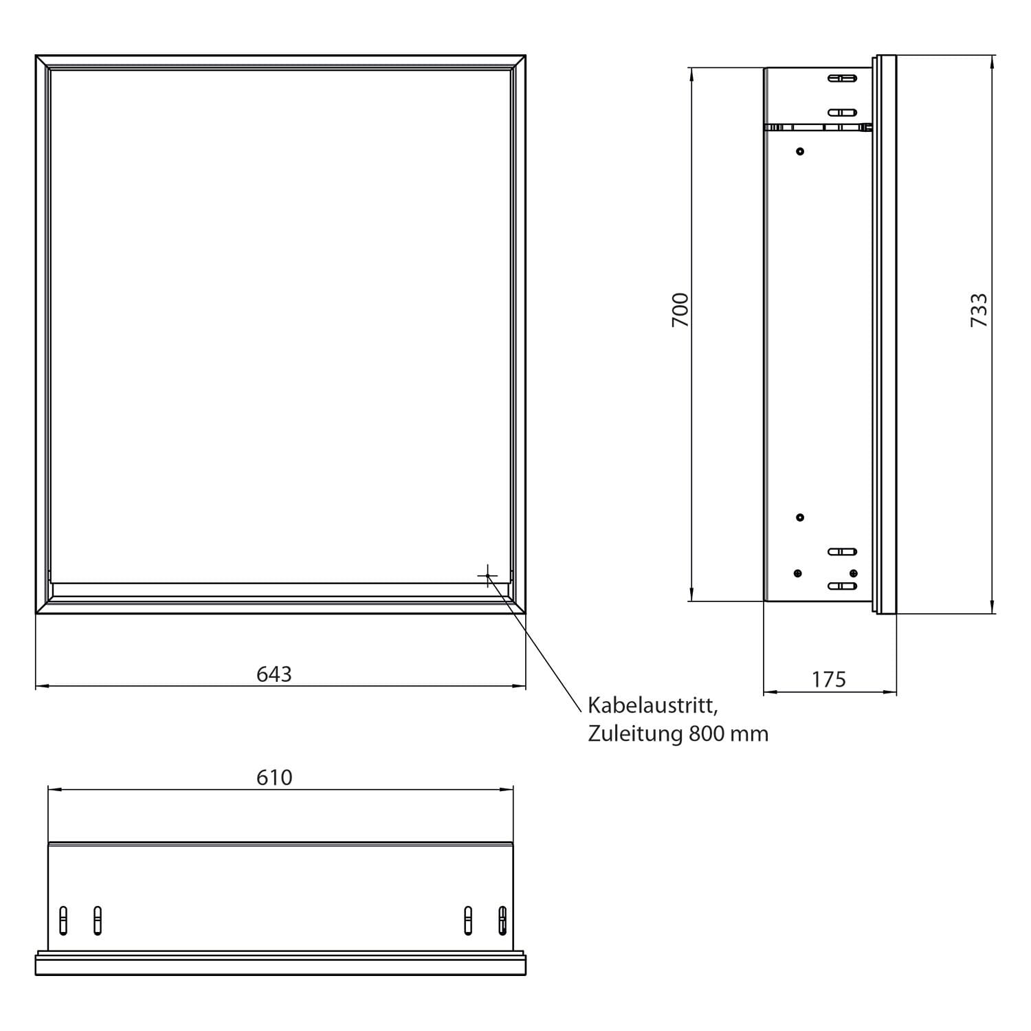 - Kabeldurchlass nach außen bei geschlossenen Spiegeltüren