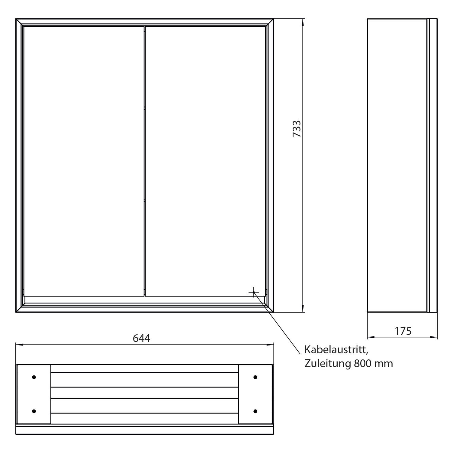 - Kabeldurchlass nach außen bei geschlossenen Spiegeltüren