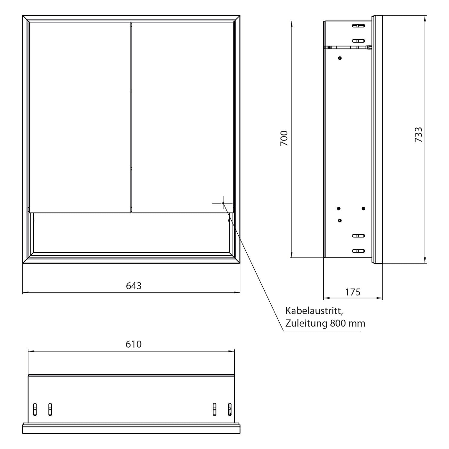 - Kabeldurchlass nach außen bei geschlossenen Spiegeltüren