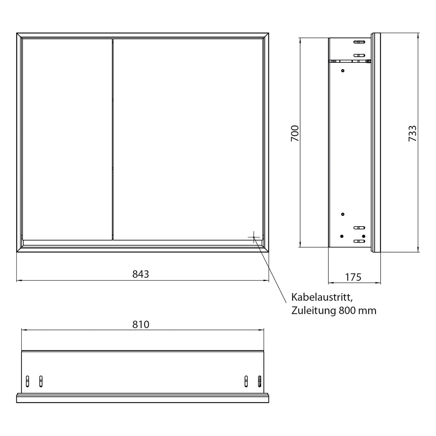 - Kabeldurchlass nach außen bei geschlossenen Spiegeltüren