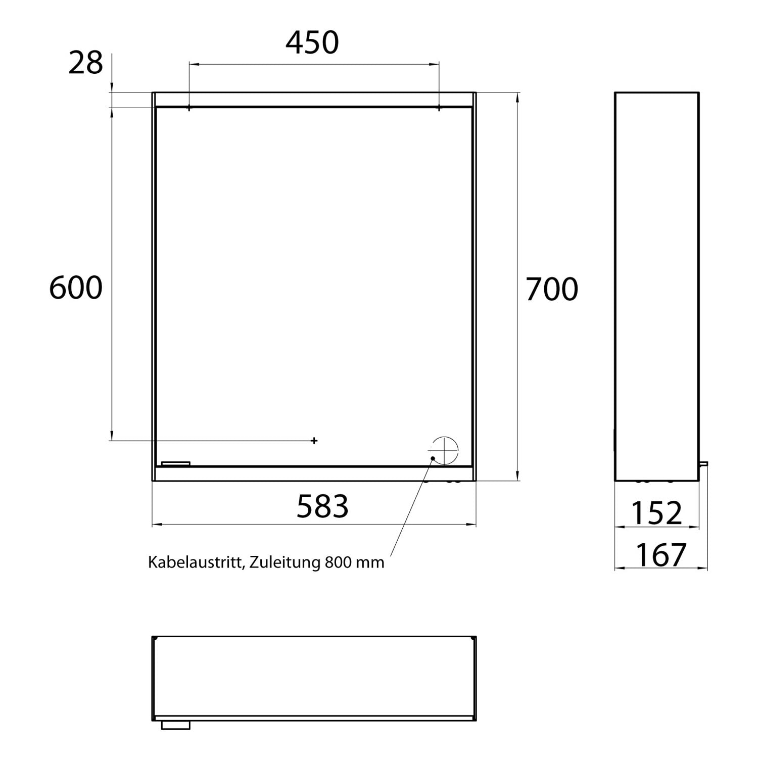 Korpus aluminium / verspiegelte Glasrückwand