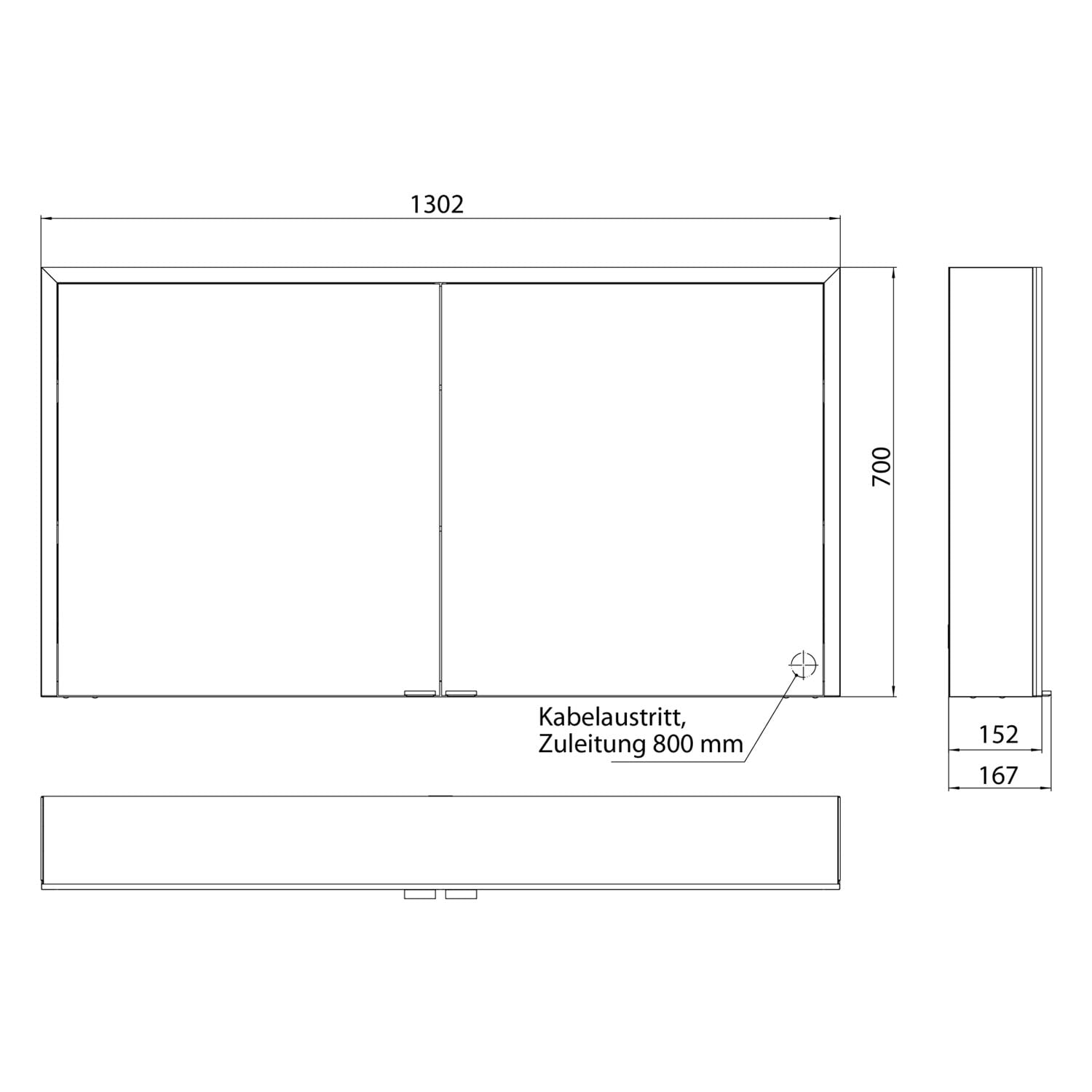Emco prime 3 LED-Lichtspiegelschrank, 130 cm, 2 Türen, Aufputzmodell