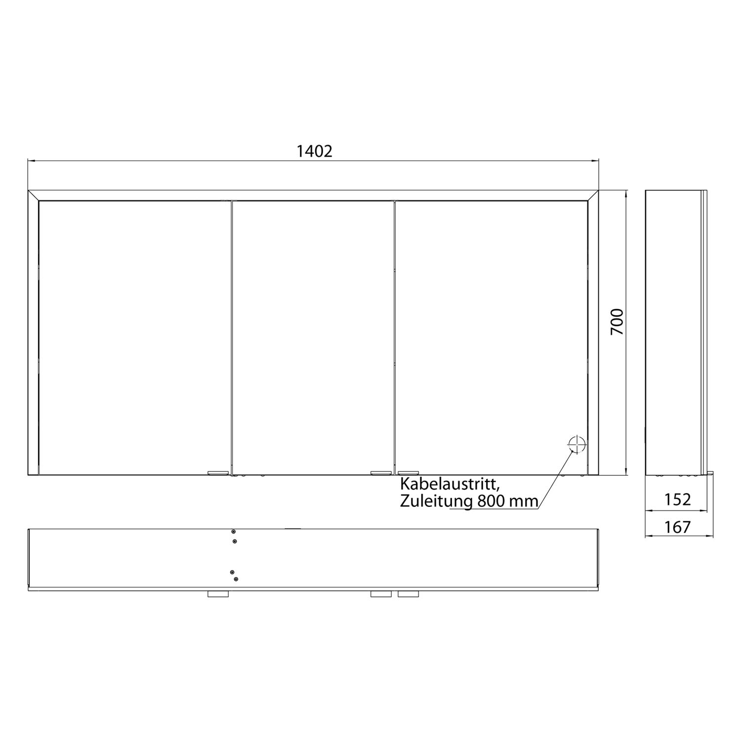 Emco prime 3 LED-Lichtspiegelschrank, 140 cm, 3 Türen, Aufputzmodell