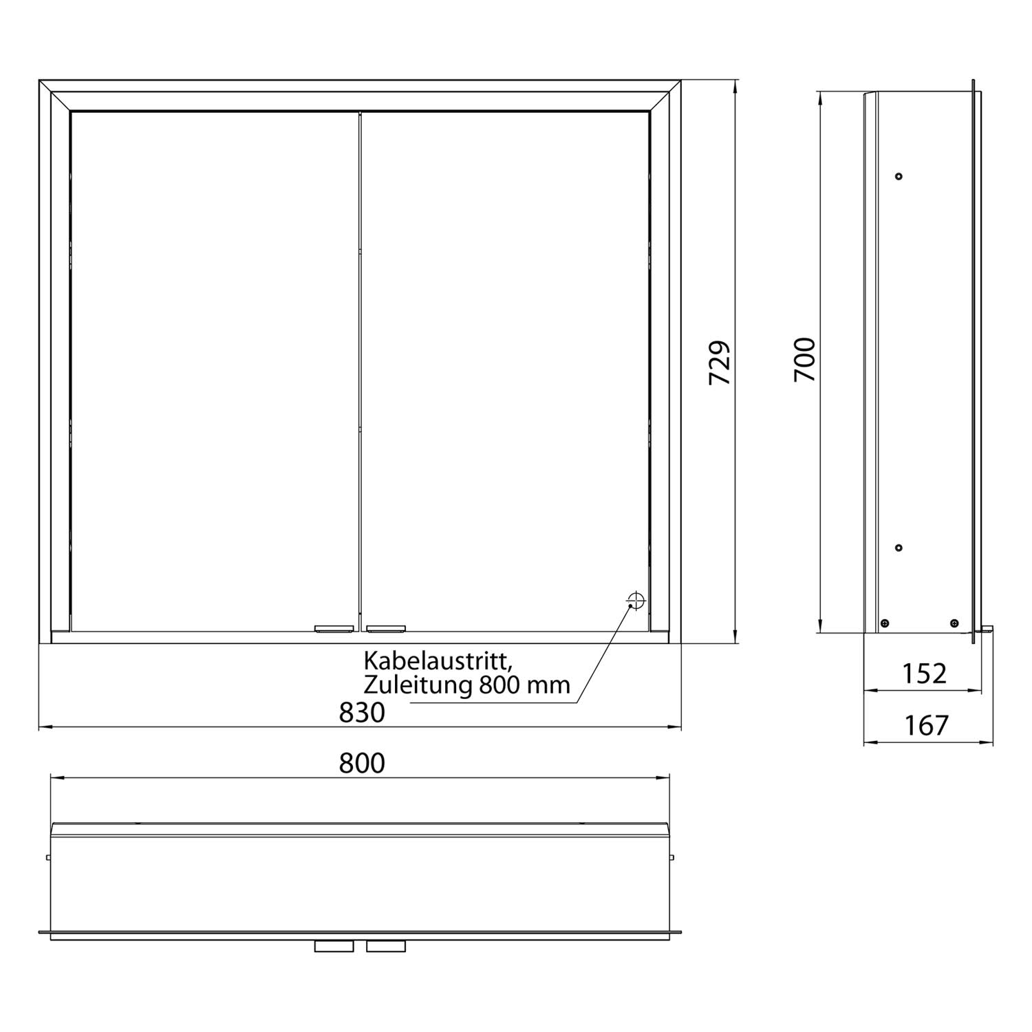 Emco prime 3 LED-Lichtspiegelschrank, 80 cm, 2 Türen, Unterputzmodell