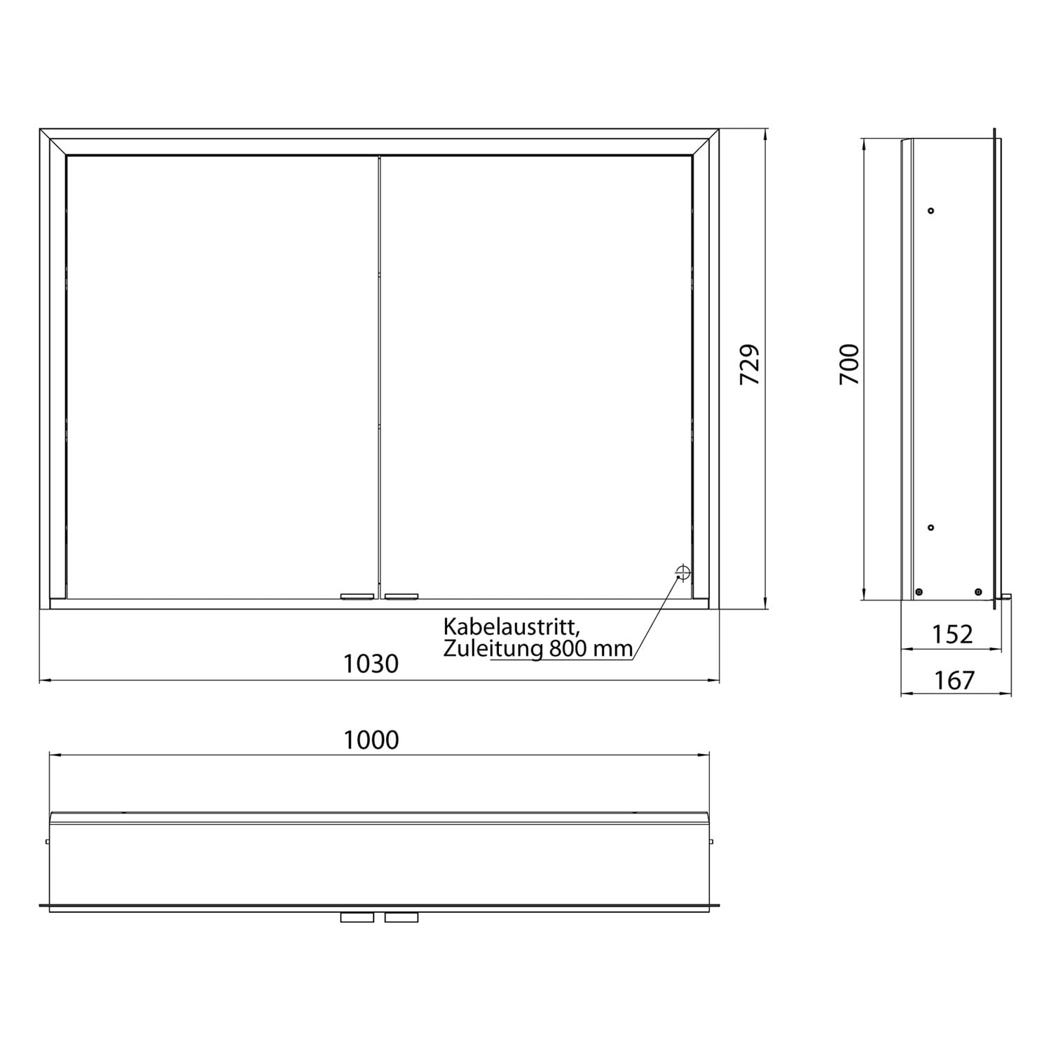 - stufenlose Steuerung über drei in die Glasrückwand integrierte Touchsensoren (an/aus, Helligkeit und Lichtfarbe 2700 – 6500 K)