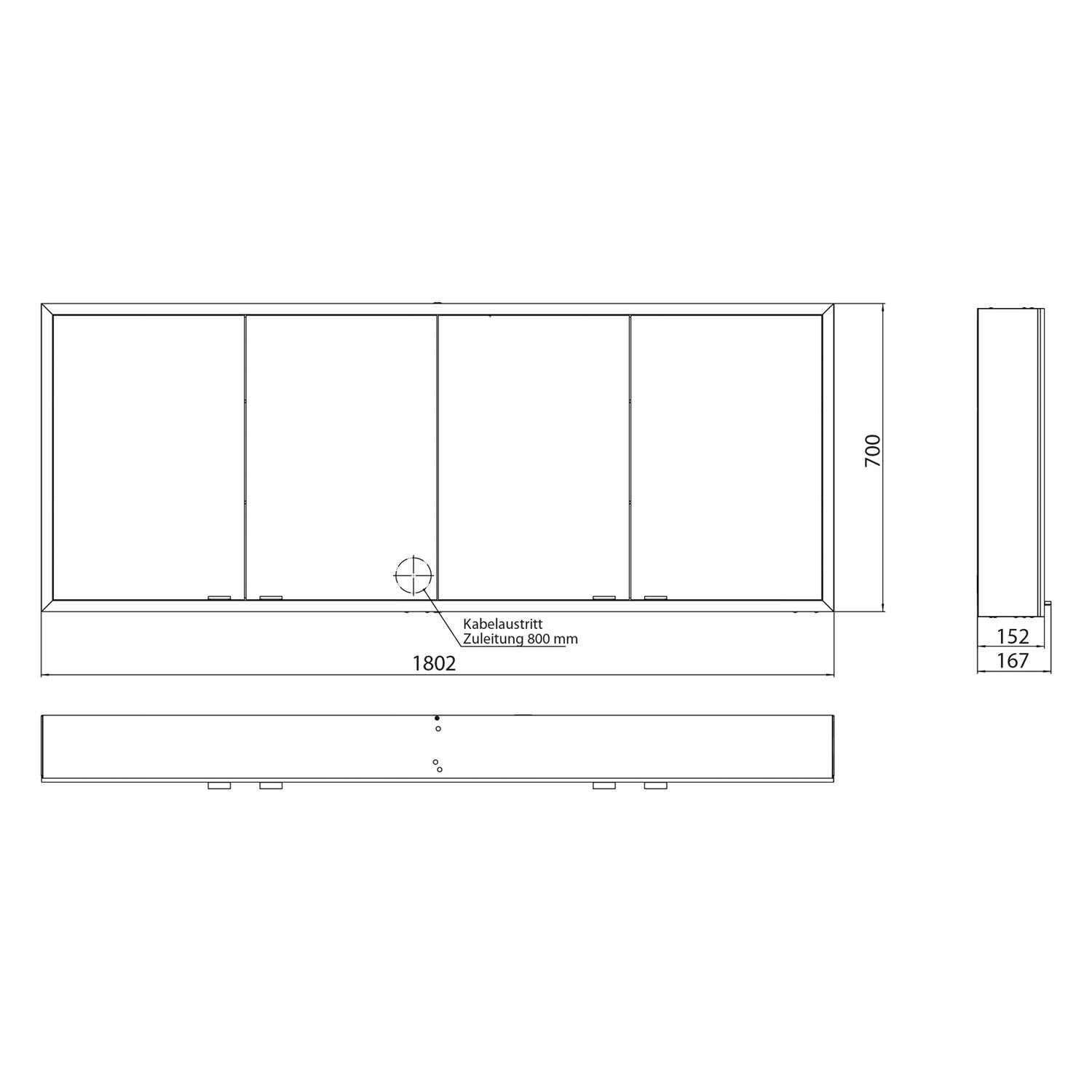 - stufenlose Lichtsteuerung (an/aus,Helligkeit und Lichtfarbe) über drei in die Glasrückwand integrierte Touchsensoren
