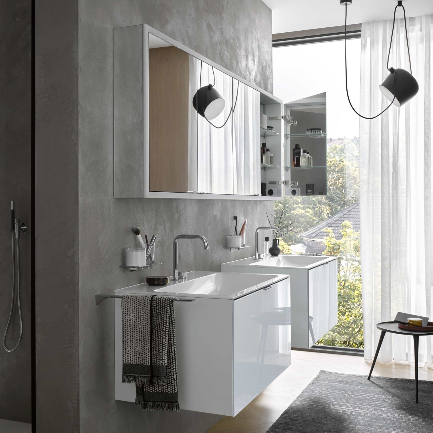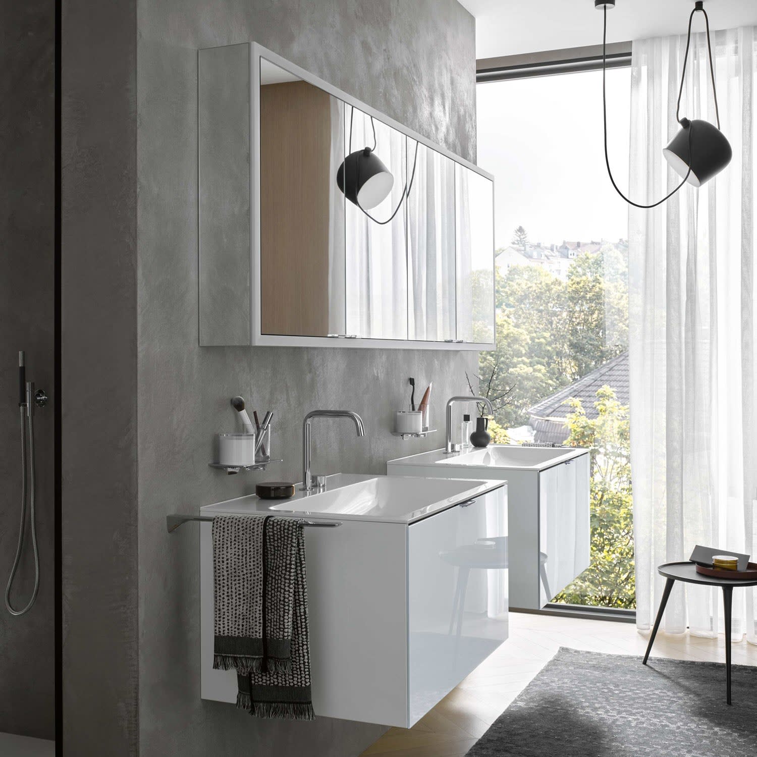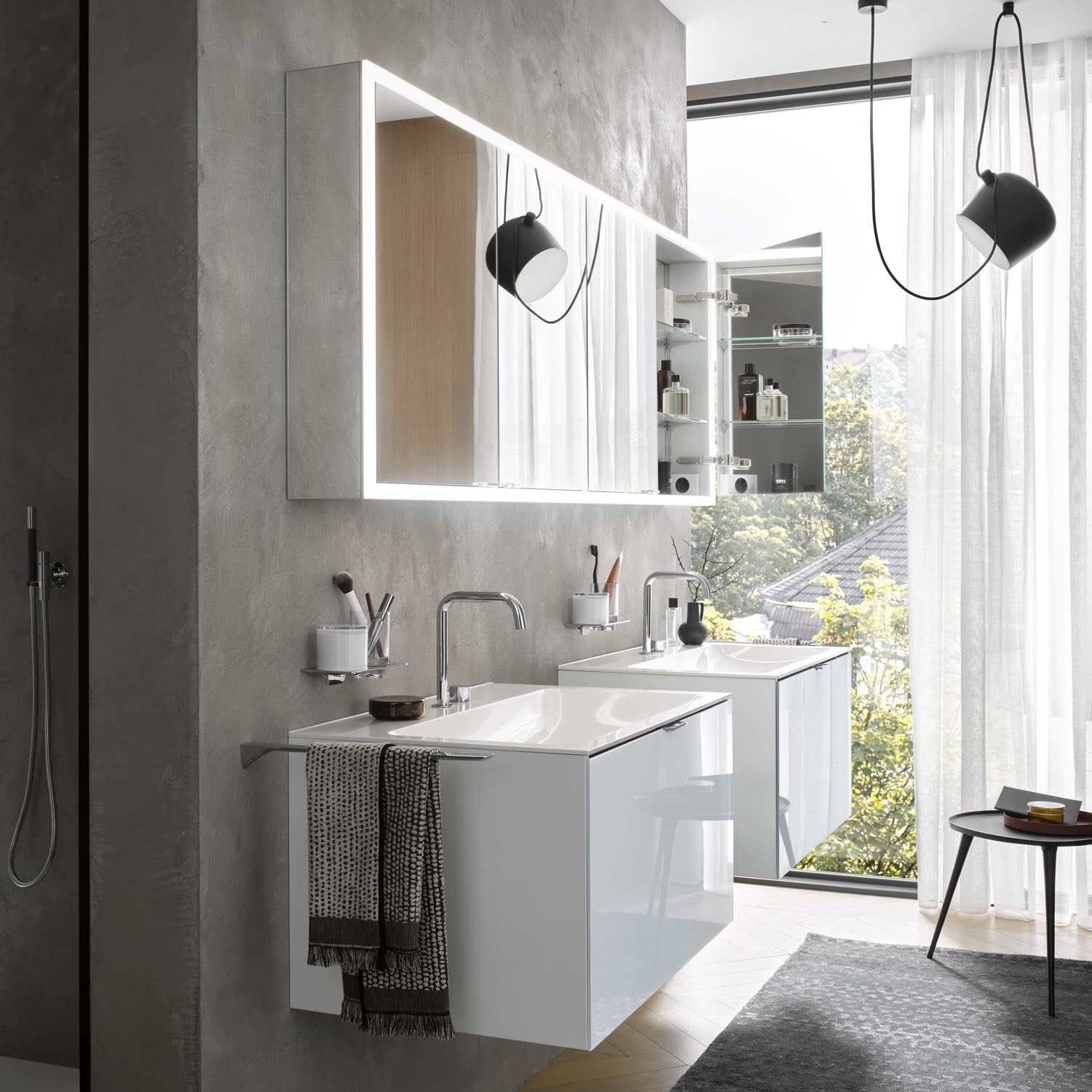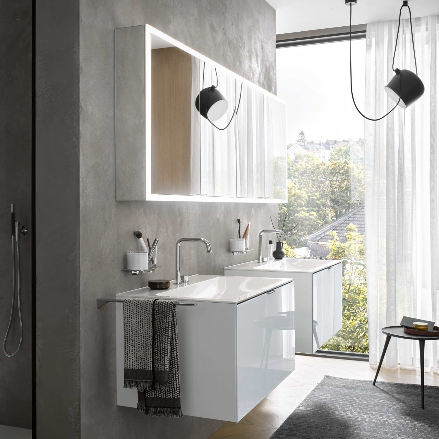 - stufenlose Lichtsteuerung (an/aus,Helligkeit und Lichtfarbe) über drei in die Glasrückwand integrierte Touchsensoren